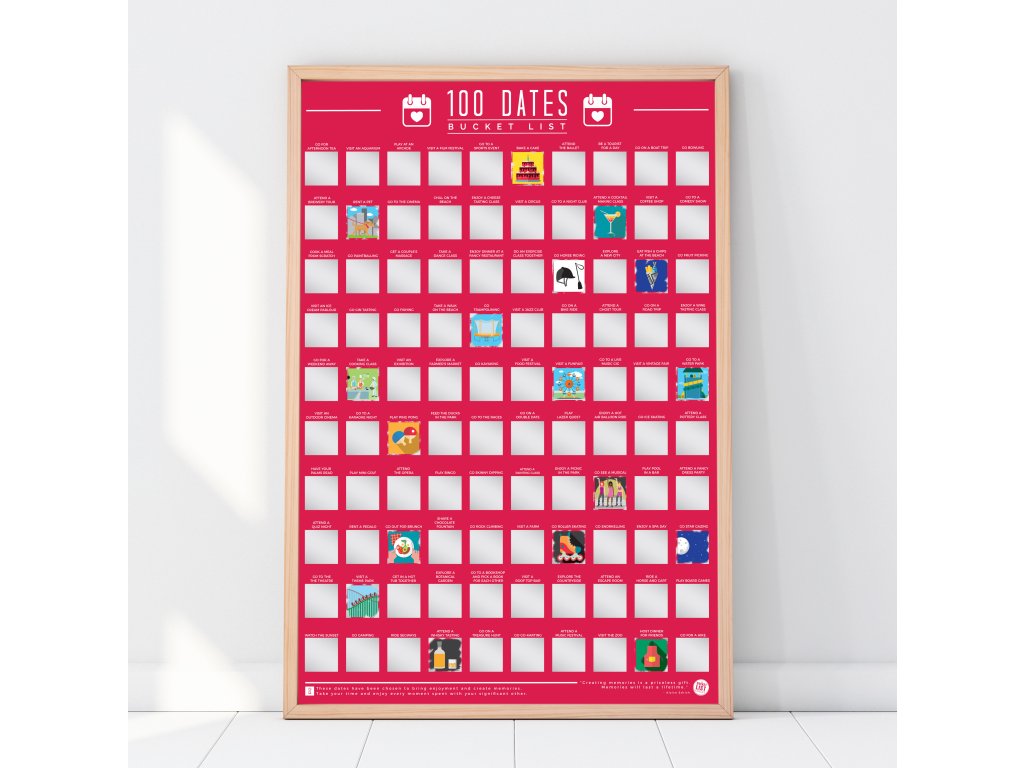 Are you running out of date ideas? Well now you and that special person in your life can explore new areas and try new hobbies together with our 100 Dates To Go On scratch poster.Doplňkové parametry