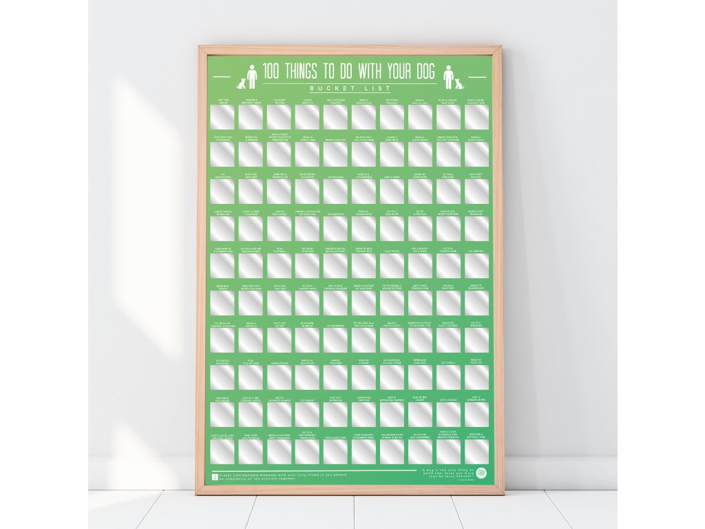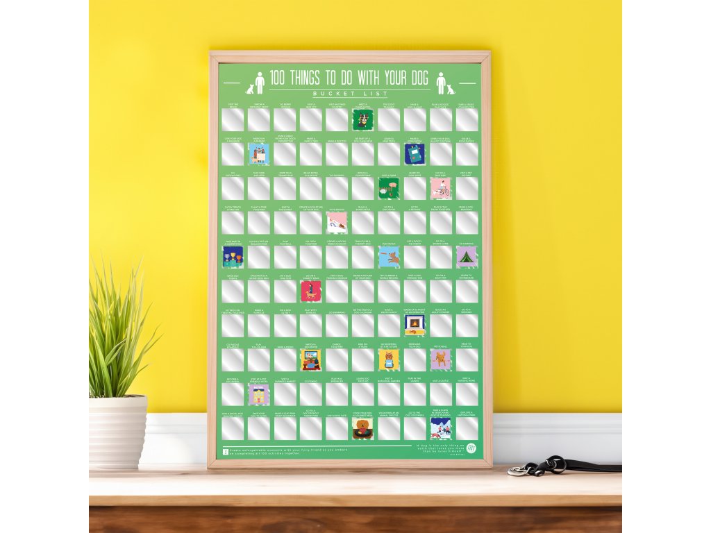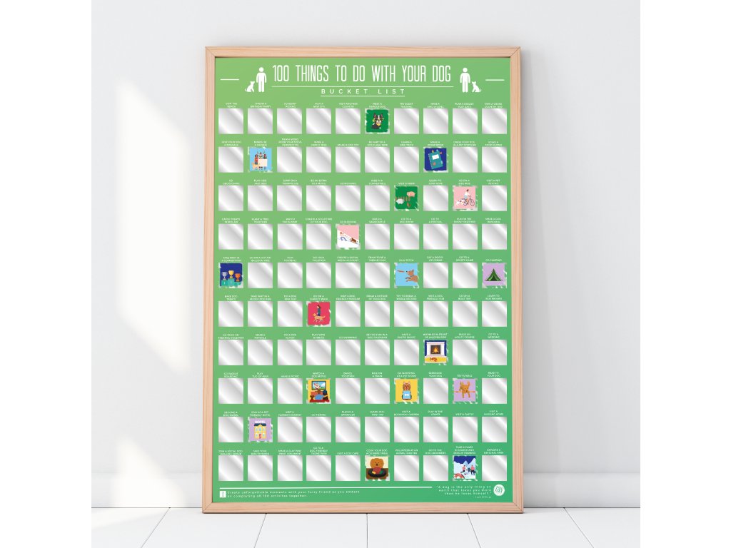 Product name: 100 things to do with your dog Blurb: Our 100 things to do with your dog Scratch Poster is a must-have for any dog owner! With 100 fun and creative activities to scratch off and reveal as you complete each one. Dims: 46 x 8.5 x 8cm Product Info: Scratch off posterDoplňkové parametry