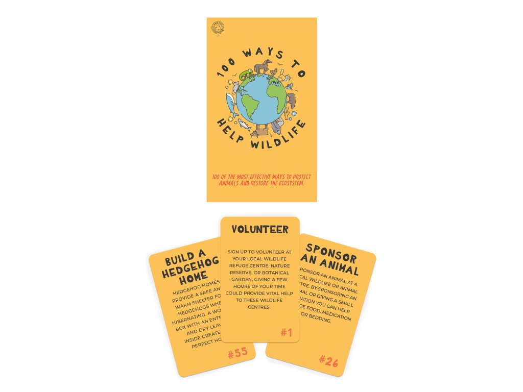 100 Ways to Help Wildlife Description: Due to the effects of global warming, habitat loss and extinction of species are now taking effect more than ever. Learn how you can stand up for nature with just a few small changes to your lifestyle. Dims:16x9x3.5cm Product Info:100 cardsDoplňkové parametry