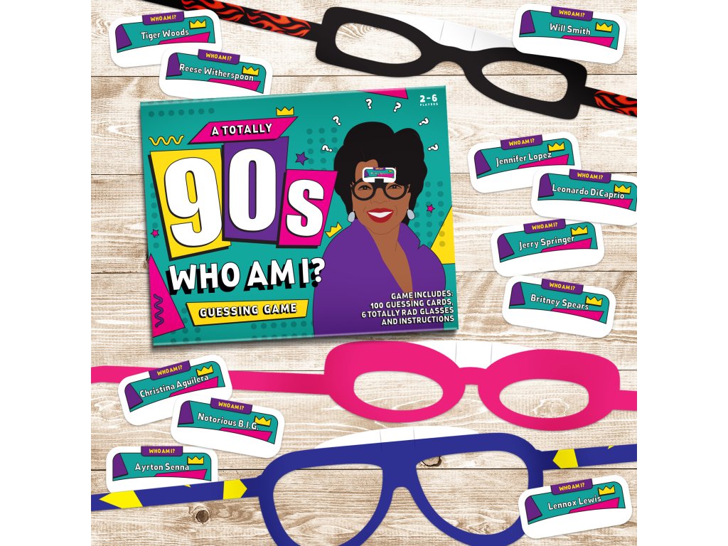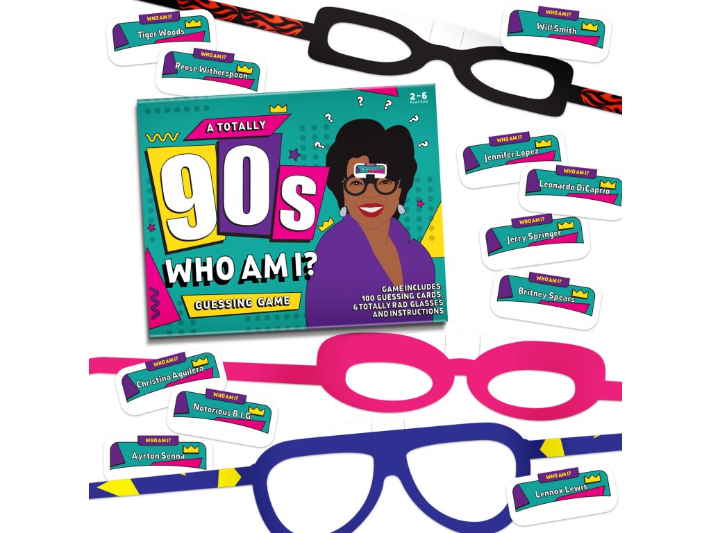 90s who am I? The Guessing Game Description: Take yourself back to the most totally rad decade filled with some of the most iconic, captivating musicians and celebrities from the 90s. The game includes guessing cards and sets of paper glasses to wear as you try to guess. Dims: 17.5x14x3.5cm Product Info: 100 cards, 6 glasses and instructions. Cardboard boxDoplňkové parametry