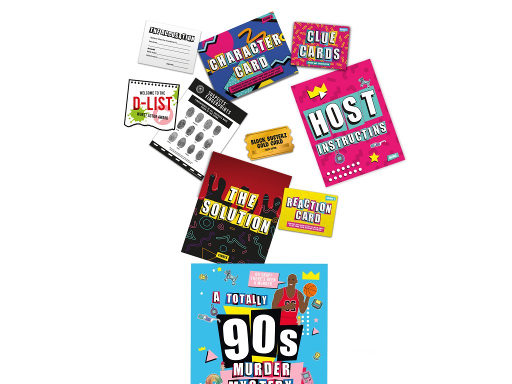 A Totally 90s Murder Mystery Description: Someone’s been murdered? Oh snap! Before you start totally buggin’, make sure you get the 411 to solve this mystery… Transport your guests back to the 90s as you host an awesome murder mystery night. Will you take a chill pill and uncover the killer, or will you end up talking to the hand? Dims: 24x19x6cm Product Info: host instructions, 12x character biography cards, 12x reaction cards, 12x round 1 clue cards, 12x crime scene props, 10 FBI report cards, 1x accusation notepad, solution cards and awards for the best and worst actors.Doplňkové parametry
