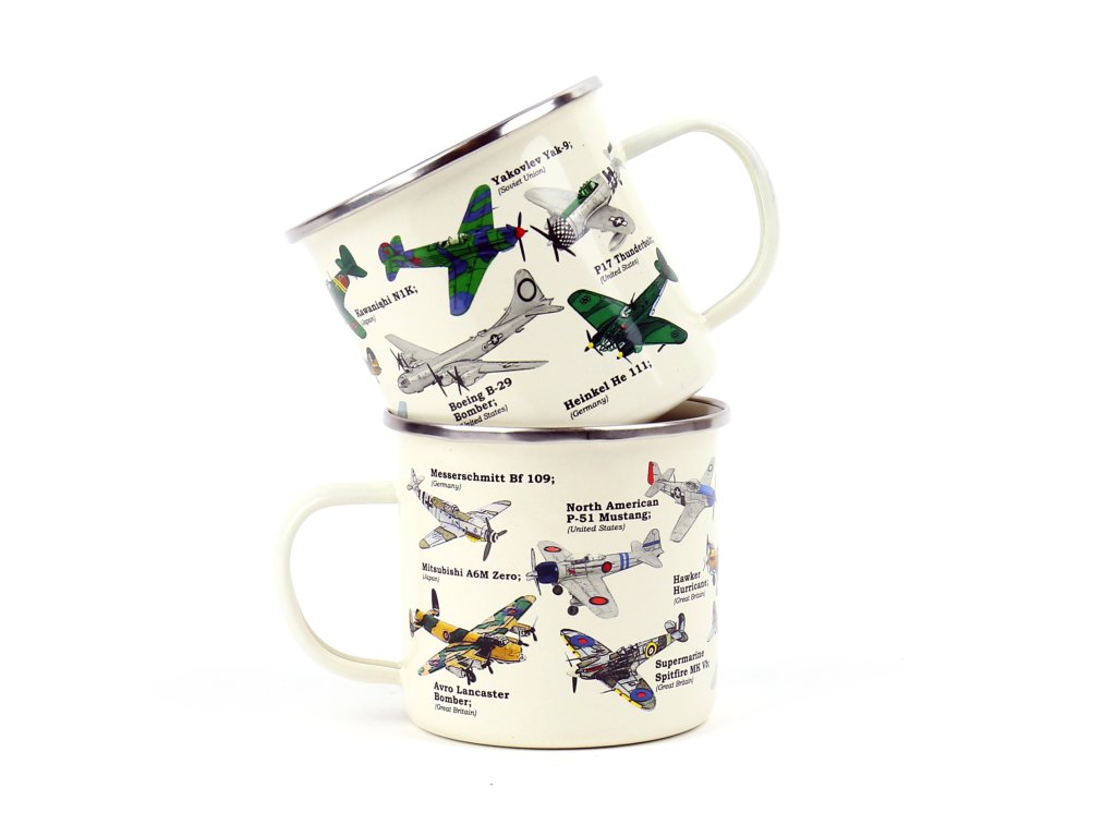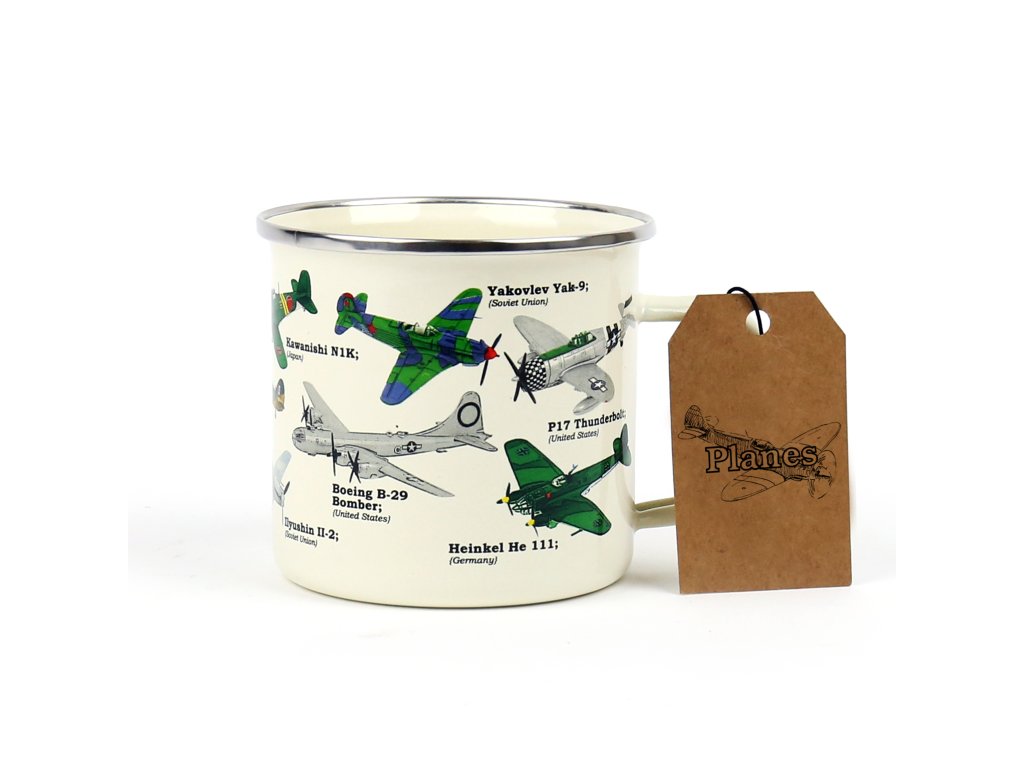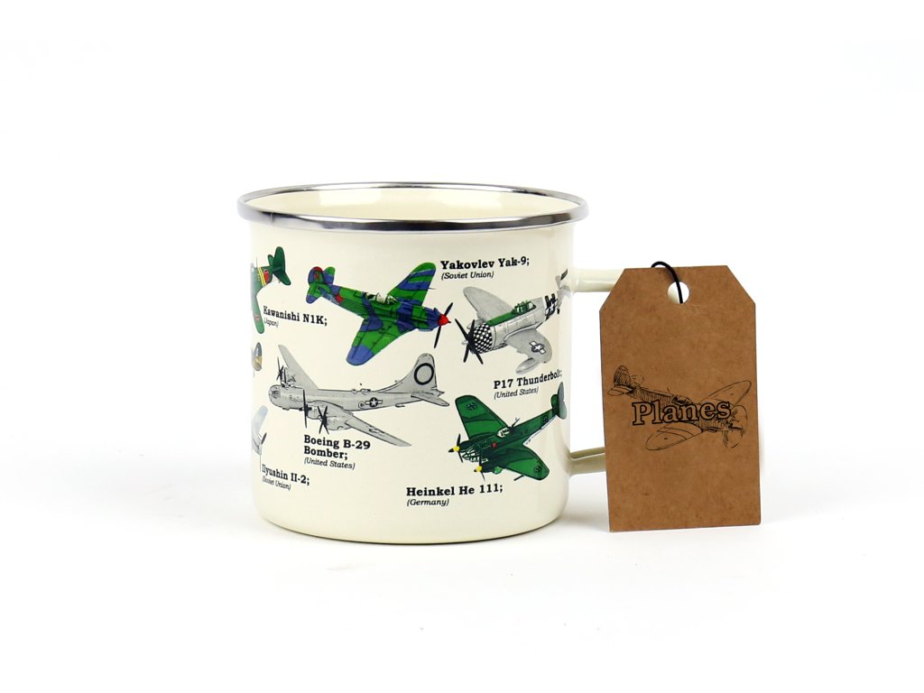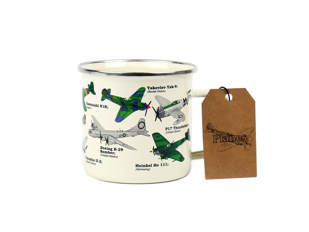 Plane Ecologie Description: This enamel mug will make for any plane lover’s perfect cup of tea or coffee. Featuring beautiful illustrations of the most iconic war planes in history. Dims: 13x10x9cm Product Info: 500ml/ 17oz Enamel MugDoplňkové parametry