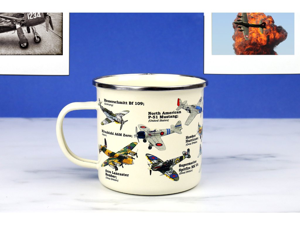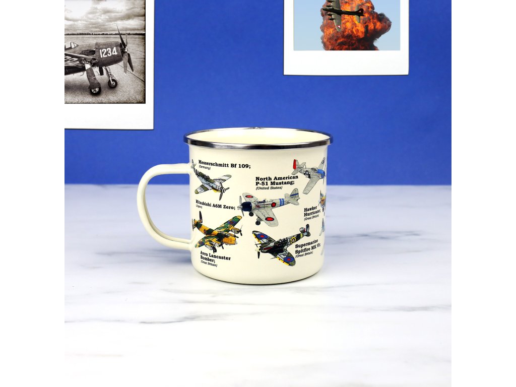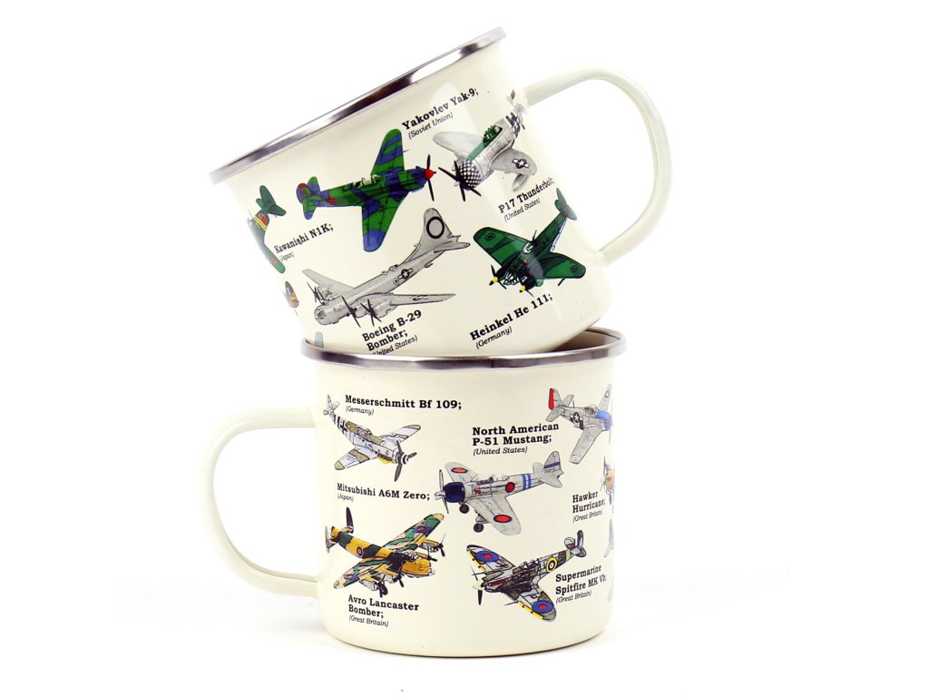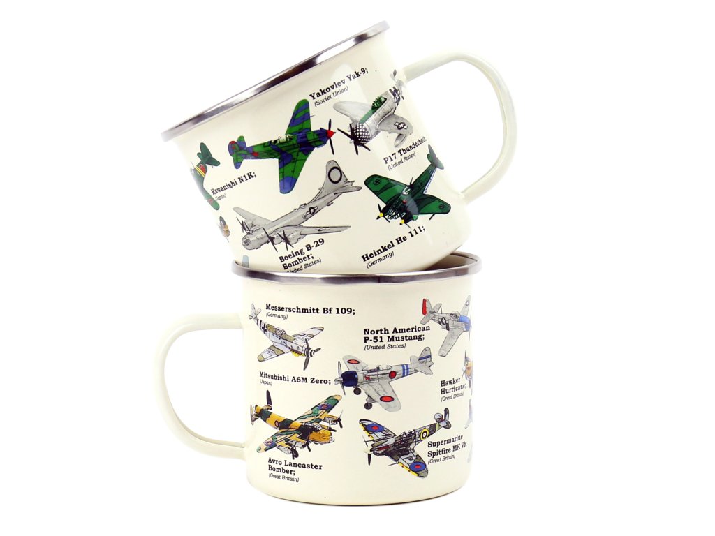 Plane Ecologie Description: This enamel mug will make for any plane lover’s perfect cup of tea or coffee. Featuring beautiful illustrations of the most iconic war planes in history. Dims: 13x10x9cm Product Info: 500ml/ 17oz Enamel MugDoplňkové parametry