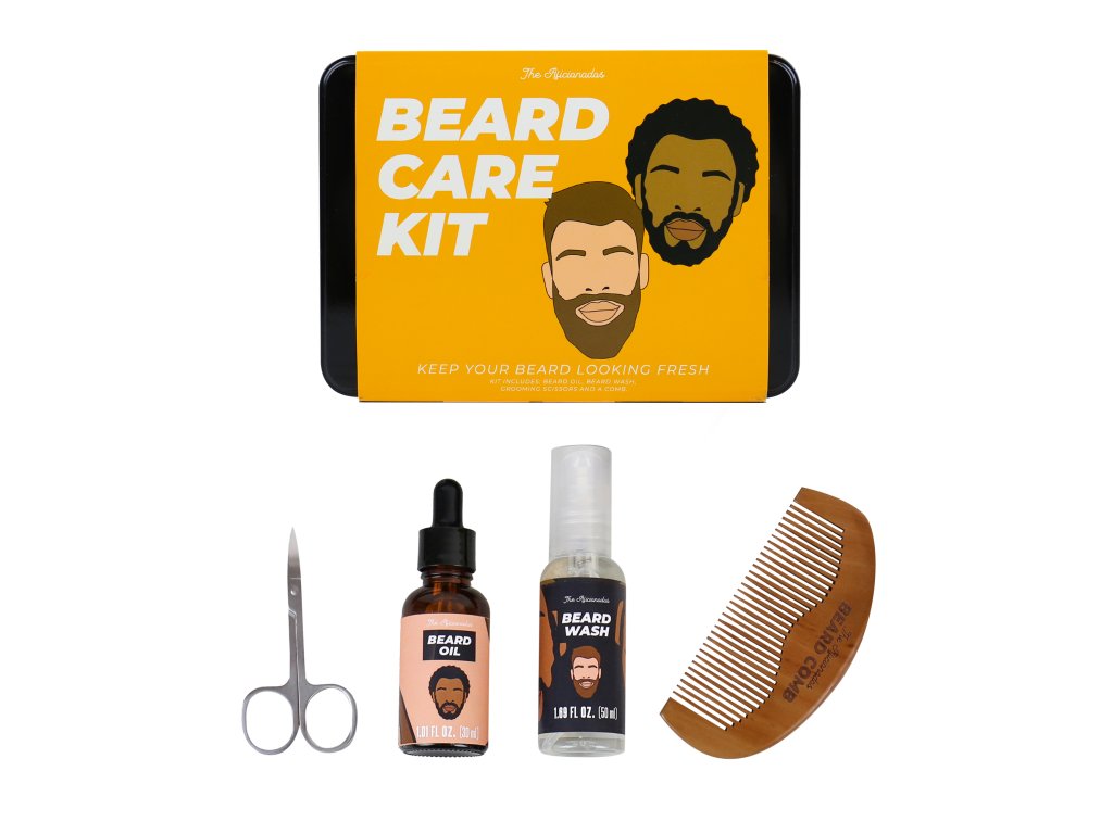 The Aficionados Kit – Beard Care Kit Keep your beard looking fresh all year round with this Beard Care Kit. It includes all the essentials from beard oil to beard wash. This sure is a fan-tache-tic gift for any beard lover! Dims: 18x12.5x5cm 30ml/1.01 fl oz beard oil, 50ml/1.69 fl oz beard wash, grooming scissors and a comb. Tin with sleeveDoplňkové parametry