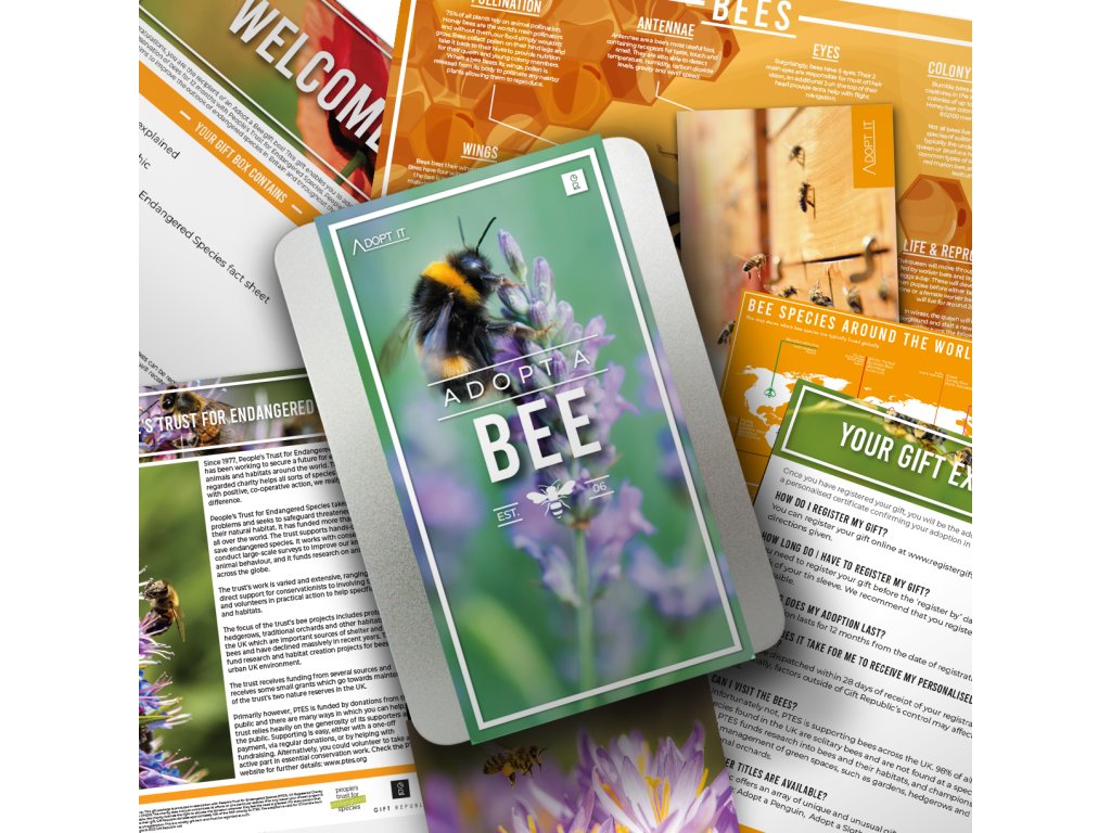 Adopt a Bee Description: We don’t need to highlight the importance of these flying, flower-loving friends but bees are a vital part of nature. Buying this tin will help to support these hardworking creatures for years to come. Dims: 22.5x16x2.5cm Product Info: 1x Welcome Letter, 1x Your Gift Explained, 1x Registration Sheet, 1x Fact Sheet, 1x Poster, 1x Infographic, 1x Information Leaflet, 1x PostcardDoplňkové parametry
