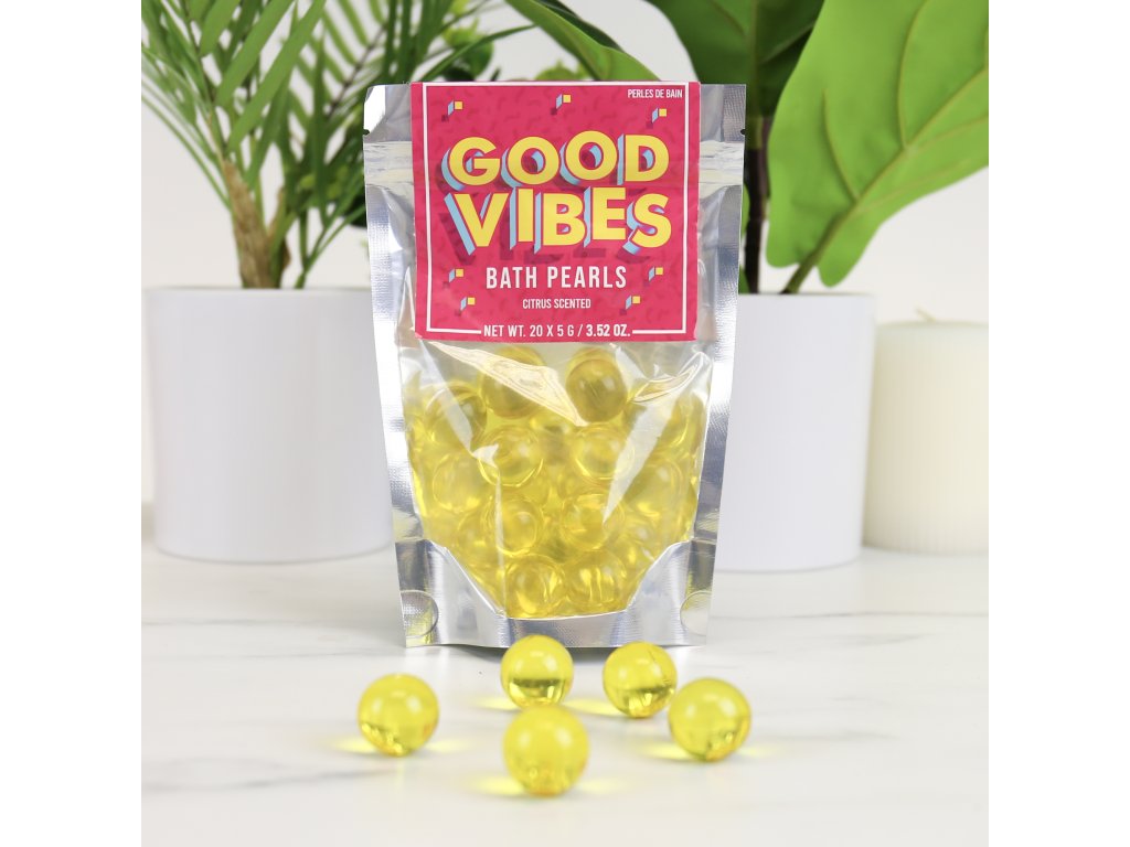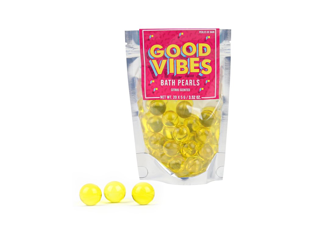 Bath Pearls – Good Vibes Description: Bring the good vibes to bath time with the 90s inspirited bath pearls. With 20 brightly coloured pearls per pack and a fragrant aroma these pearls will be a hit for all ages. Dims: 18x12x4cm Product Info: Set of 20 bath pearls.Doplňkové parametry