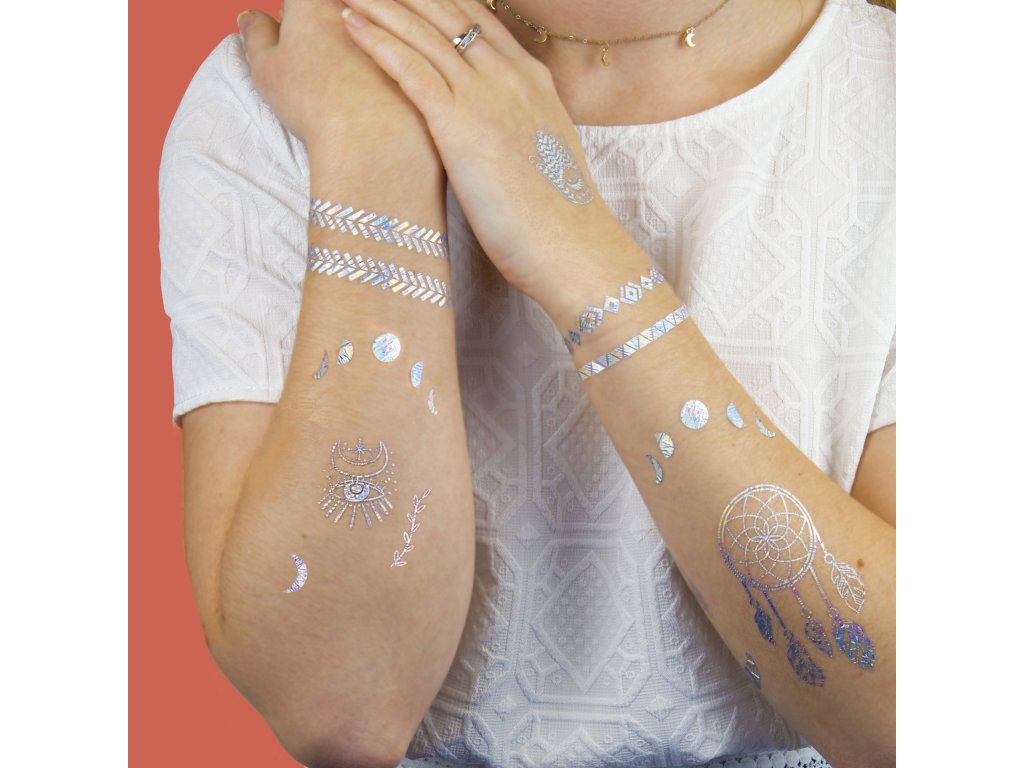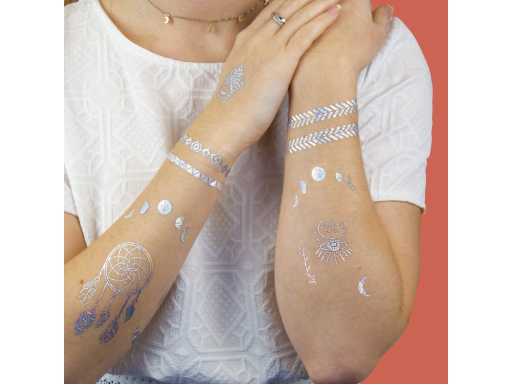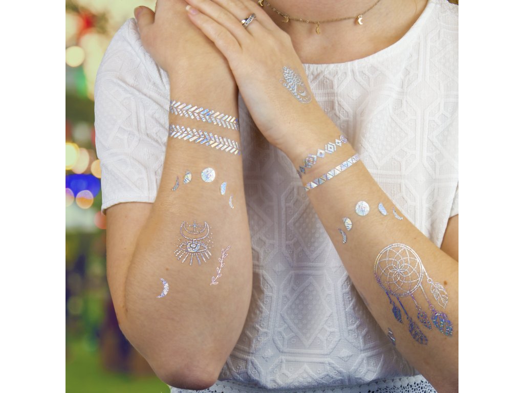 Flower Child Body Tattoos Bring on the festival season in style! Our iridescent temporary tattoos will have you looking groovy all summer long.Doplňkové parametry