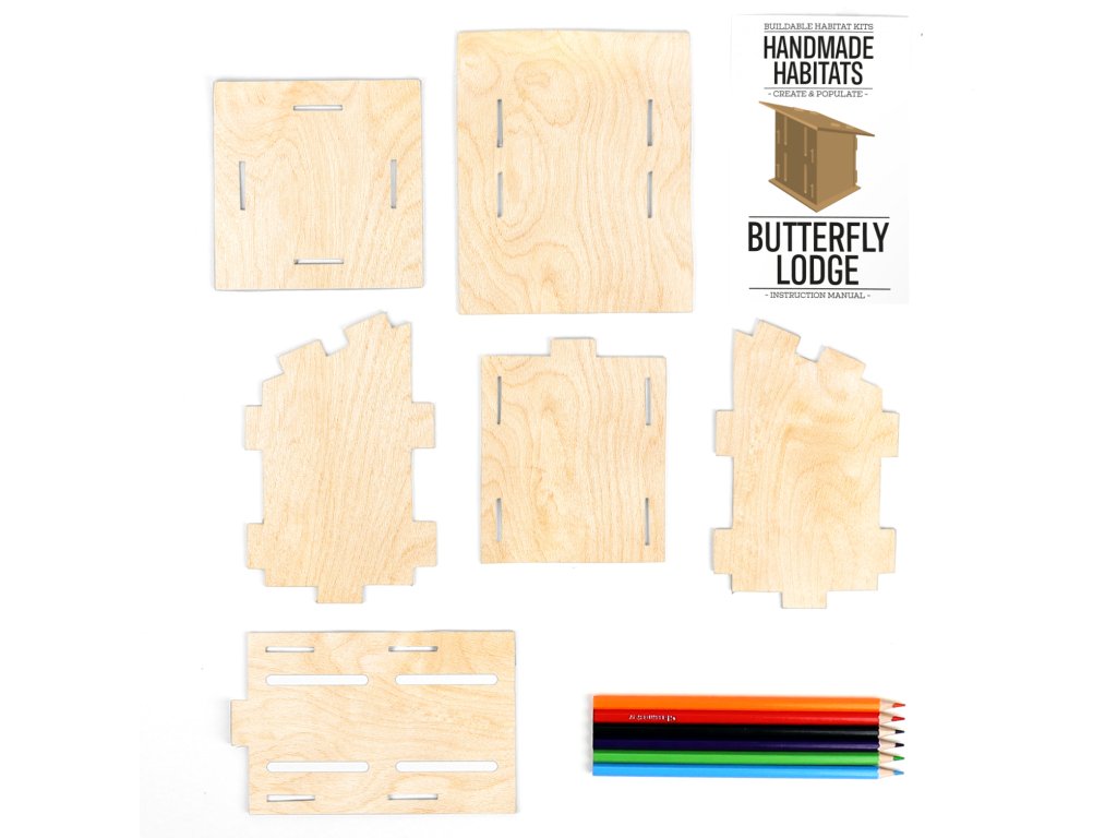 Handmade Habitats – Butterfly lodge Description: Get creative and help any beautiful butterflies in your garden! This simple kit contains everything you need to build your own butterfly lodge. Dims:19.5x14.5x6.5 Product Info: flat pack wooden kit 6x pencil crayonsDoplňkové parametry