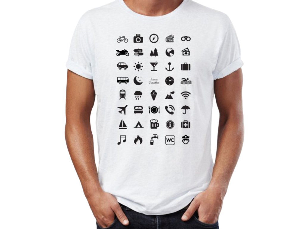 Chystáte se na dovolenou do ciziny, ale nejste si jisti svým jazykem? Bojíte se, že se nedomluvíte a někde se třeba ztratíte? Pak Vám doporučujeme toto šikovné cestovní tričko s ikonami, které Vám pomůže dorozumět se v případě nouze. Ikony na tričku znázorňují veškeré důležité symboly jako jídlo, toaletu, čas, nemocnici, autobus, telefon, atd. Pokud si nebudete jistí, jak se zeptat, stačí ukázat na ikonu na tričku. Budete-li například hledat telefon, stačí pouze ukázat na ikonku telefonu na tričku. S tímto praktickým tričkem se zaručeně ve světě neztratíte. Cestovní tričko s ikonami je originální dárek na cestování do ciziny.