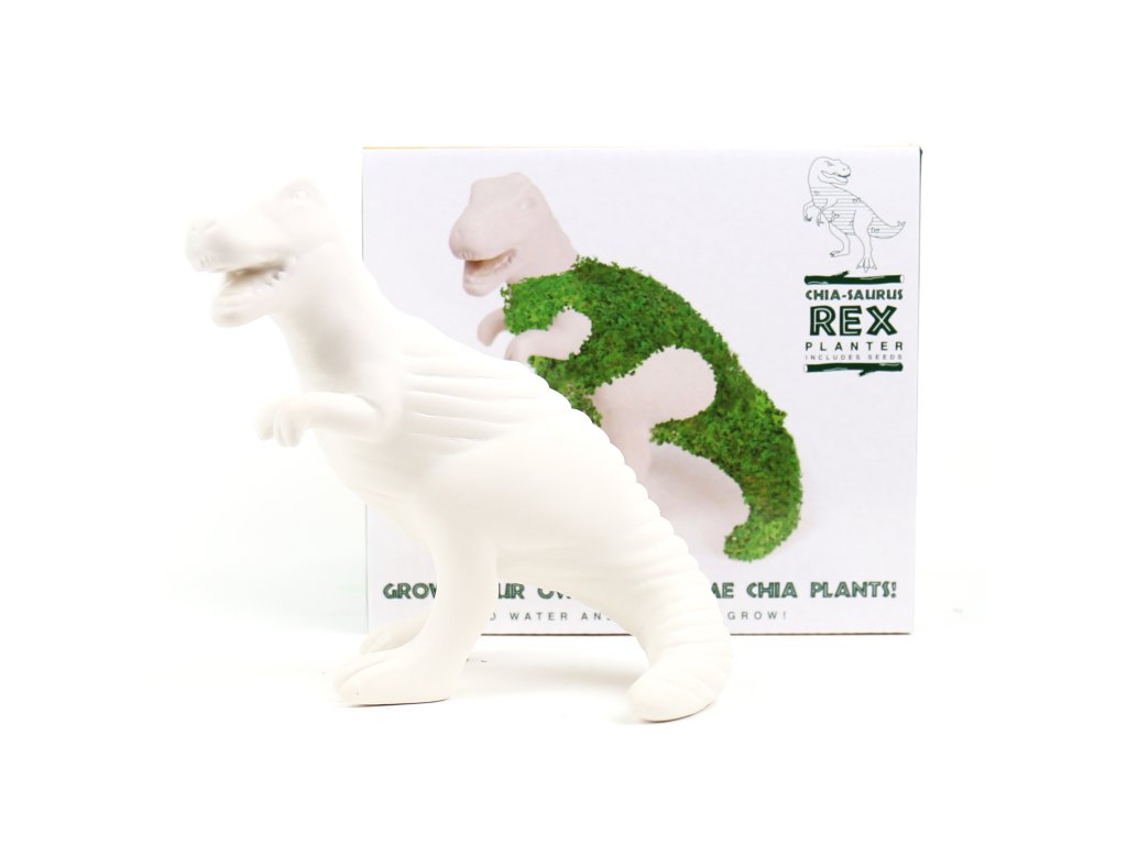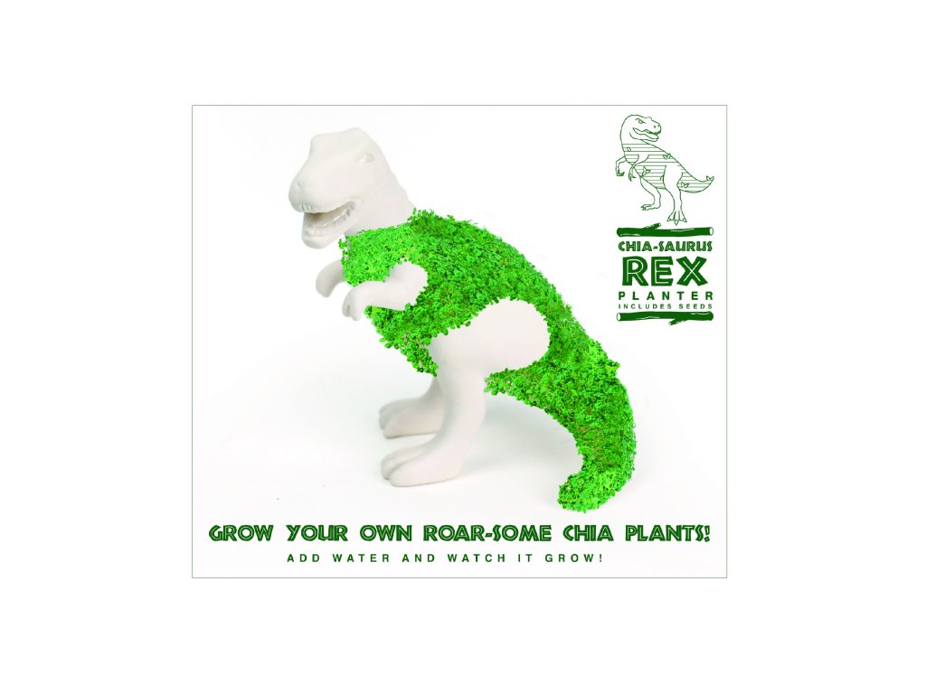 CHIASAURUS REX NOVELTY Description: Turn your tables into prehistoric jungles with the terrifying Chiasaurus Rex! Just cover him in the seeds provided, add water and sunlight and watch the Jurassic Juggernaut grow! Dims: 18.5 x 16.5 x 18.5 cm Product Info: Ceramic planter with seeds. Polystyrene insertDoplňkové parametry