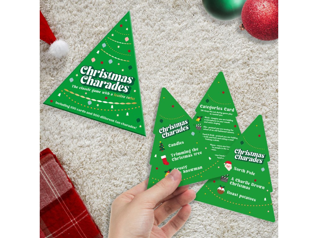 Christmas Charades The classic game of charades with a festive twist. Mime your way to victory across 6 Christmassy categories. 100 cards included Dims: 14x13x3cm Product Details: 100 tree-shaped cardsDoplňkové parametry