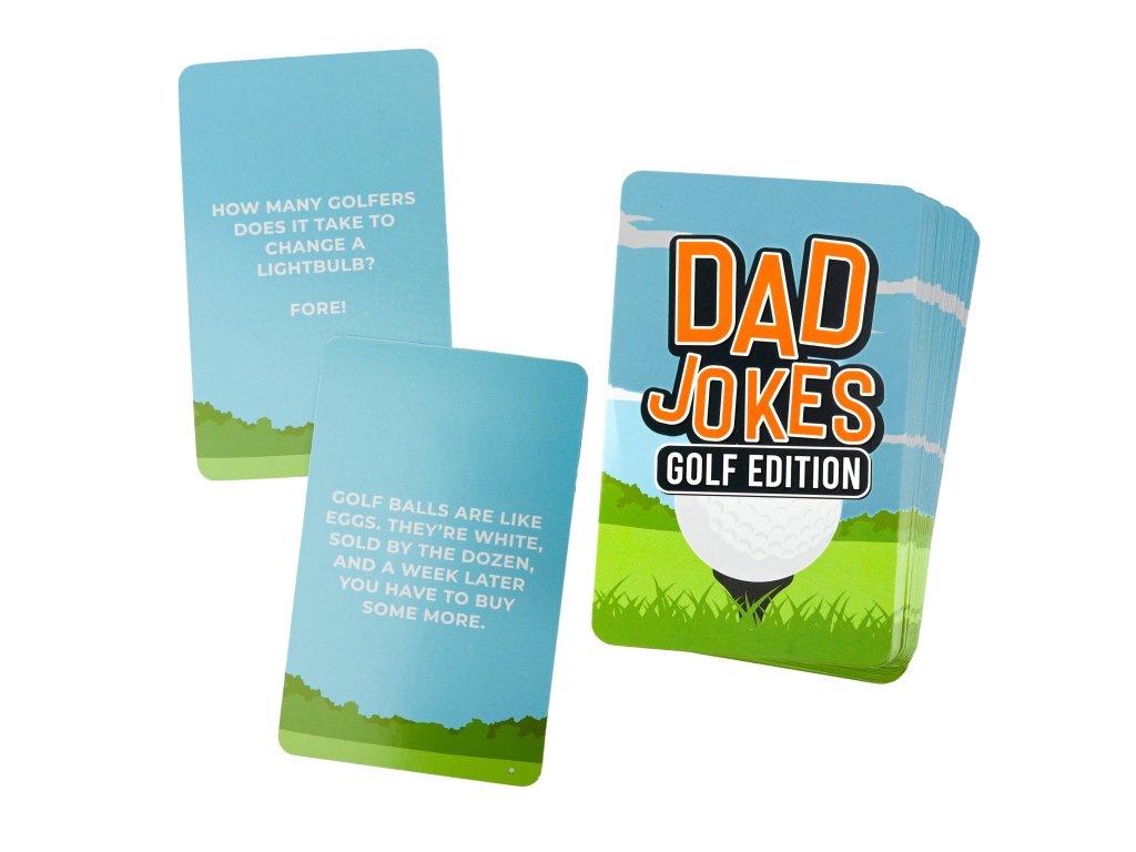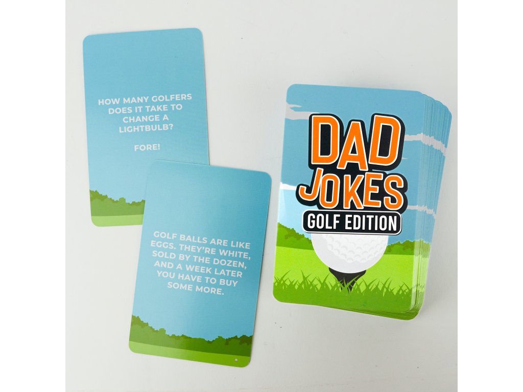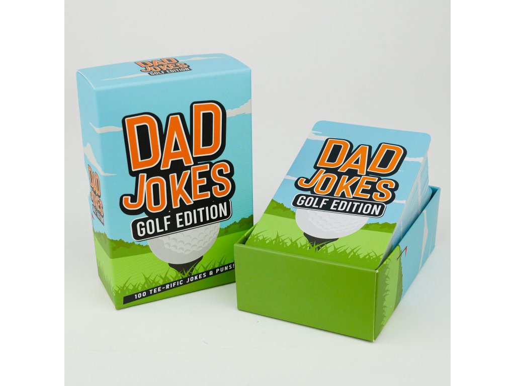 Product Name: Dad Jokes - Golf Edition In need of some tee-riffic Dad jokes to impress your fellow golfers at the club? With 100 cards filled with golfing jokes, one liners and hole in puns, these cards will putt a smile on your face and make you laugh your pars off. CDU Dims: 23.5x21x16cm Product Info:100 cardsDoplňkové parametry
