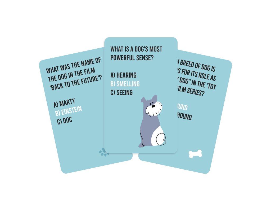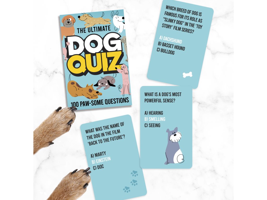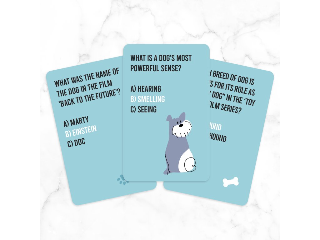 Dog Quiz _ Description: Featuring 100 tail-wagging questions, this quiz is a paw-some journey into the world of man's best friend. From breed trivia to behavioral quirks, explore the fascinating realm of dogs and deepen your understanding of these loyal companions. Whether you're a seasoned dog enthusiast or a curious beginner, the Dog Quiz guarantees hours of fun and learning. So fetch your curiosity and unleash your inner canine expert as you embark on this thrilling quiz experience! Dims: 23x21x16cm Product Info: 100 cards Packaging: CDUDoplňkové parametry
