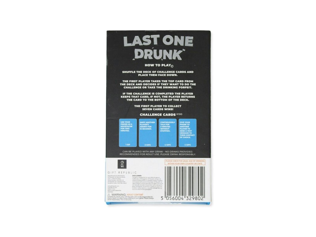 As the name mentions, the aim of the game is to be the last one drunk. Seems pretty easy right? Well the 100 challenge cards practically guarantee a wild night. One to remember… or not.