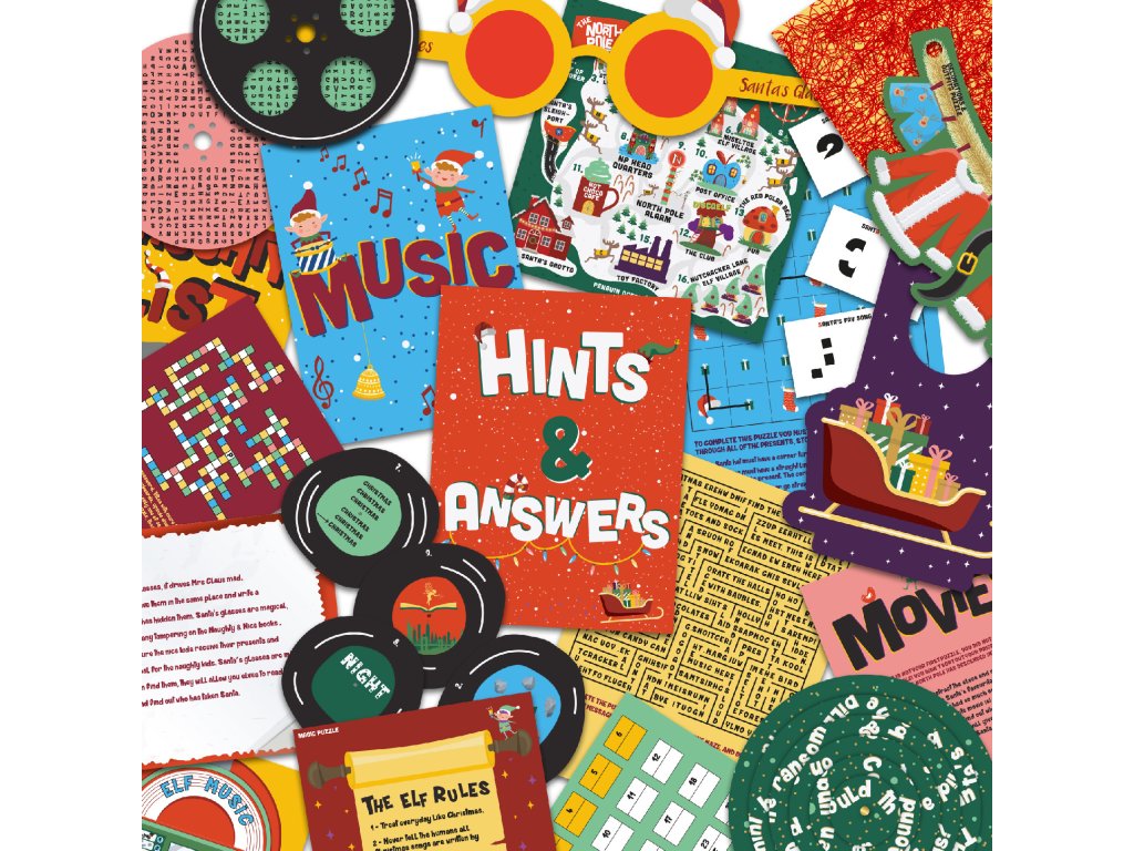Escape the north pole Description: Ho-ho-no! You’re trapped in the North Pole! This Christmas escape room will make you hold on for deer life as you work through the cheery challenges. Dims: 24x18.5x6.5cm Product Info: Host instructions, 6x puzzles, 1x Santa’s washing line puzzle, 1x Santa’s red glasses, 1x Naughty list grid puzzle, 2x festive greeting cards, 1x elf code sheet, 3x Pieces of ribbon, Host instructions and intro, Hints and answers booklet, 1x time sheet, 1x final door exit sleigh and 3x notepadsDoplňkové parametry