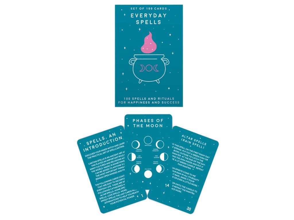 _ Description: Are you looking to conjure up a love spell or just bring yourself some good luck? This card pack features rituals to help you achieve success and happiness in all parts of your life. Dims: 23.5x21x16cm Product Info: 100 cardsDoplňkové parametry