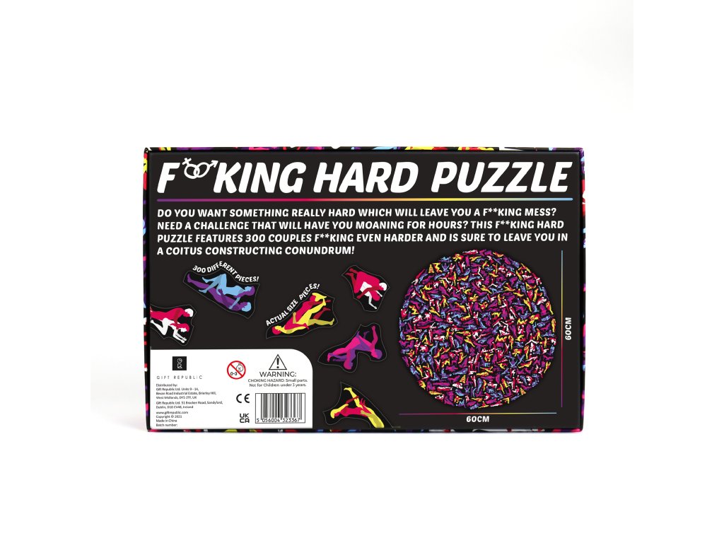 F**king Hard Puzzle Description: You’ll never have thought this hard about sex before. This puzzle contains 300 different shaped pieces showing people f**king hard, and it’s even f**king harder to complete! can you orgy-nise all the pieces to complete this complete cluster f**k of a puzzle? Dims: 25.4 x 16.4 x 5.8 cm Product Info: Carboard box, 300 puzzle pieces, solution sheetDoplňkové parametry