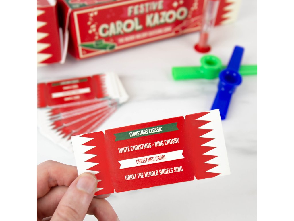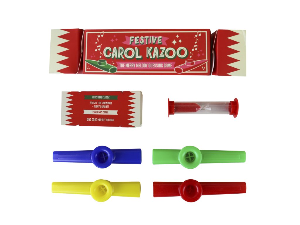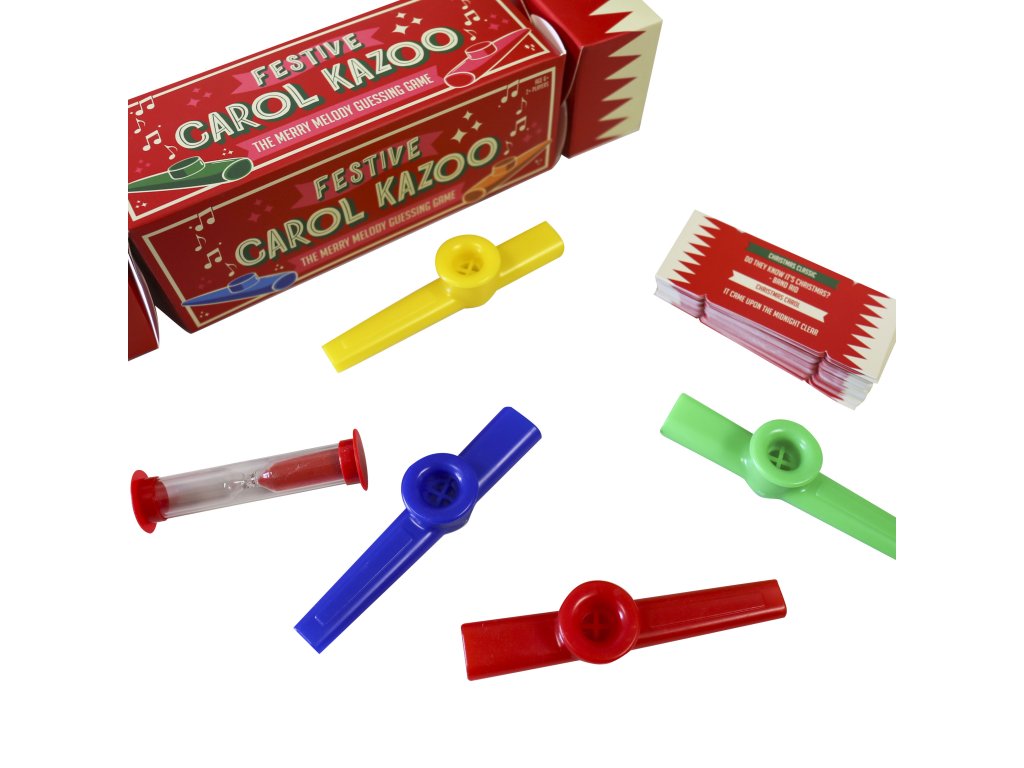 Festive Carol Kazoo Description: prove you’re a true music maestro and kazoo your way to victory with this merry melody guessing game. from songs like ‘last Christmas’ and ‘jingle bell rock’ to carols such as ‘silent night’ and ‘Deck the Halls’ it’ll be a smash hit with all your family and friends. Packaging: Cardboard box Dims: 29x7x7cm Product Info: Includes: 4 kazoos, 120 songs to guess, a sand timer and instructions. Age 6+ 3+ playersDoplňkové parametry