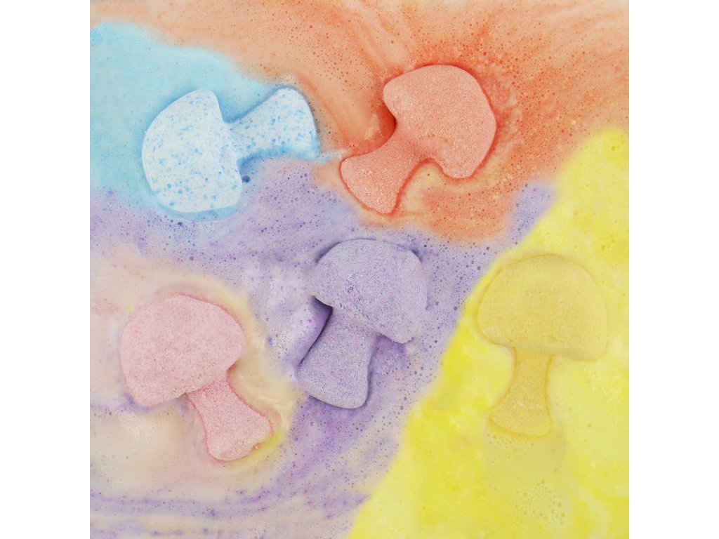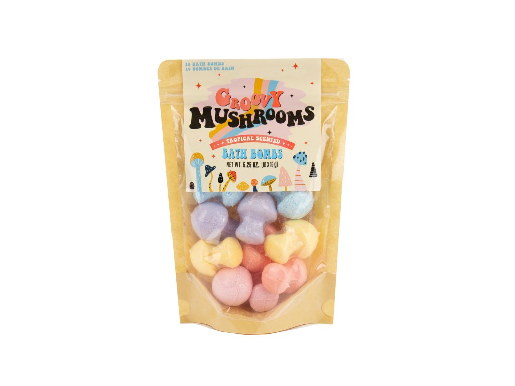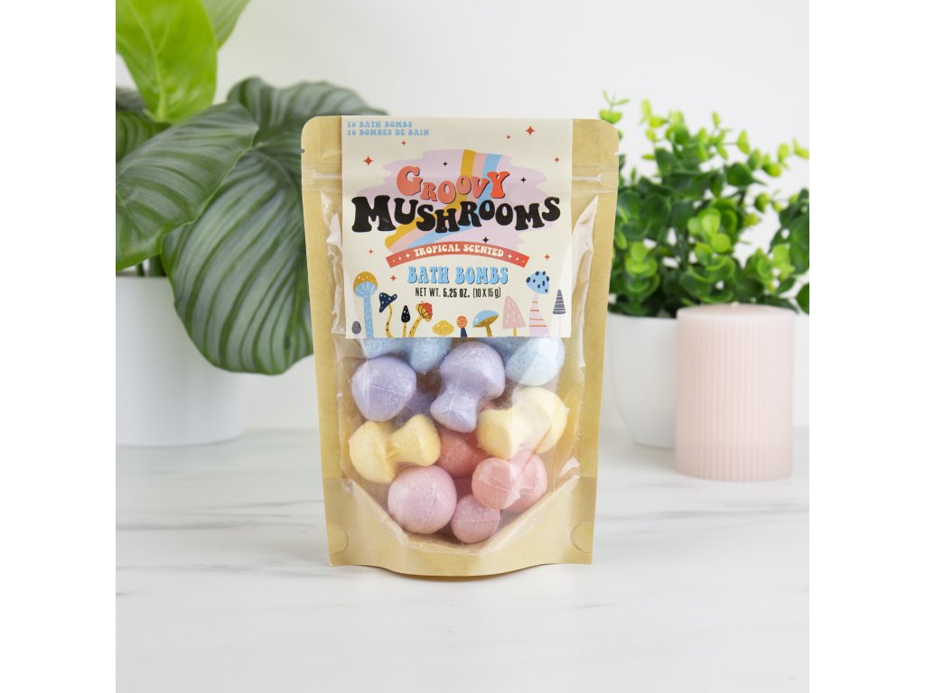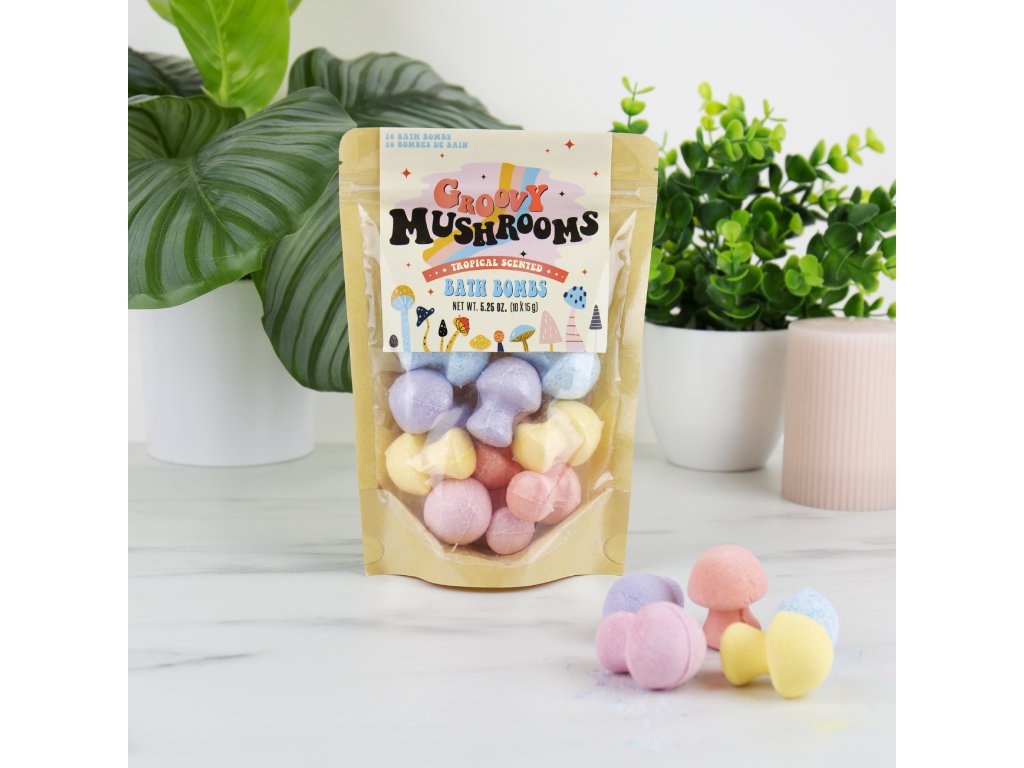 Groovy Mushroom Bath Bombs Description: Ready for a psychedelic dip? These groovy mushroom bath bombs will funk up your bath time with radical colours and scents, letting you chill out to the max and enjoy a relaxing soak. Packaging: Kraft Bag Dims: 21x13x6cm Product Info: 10x15g/5.25ozDoplňkové parametry