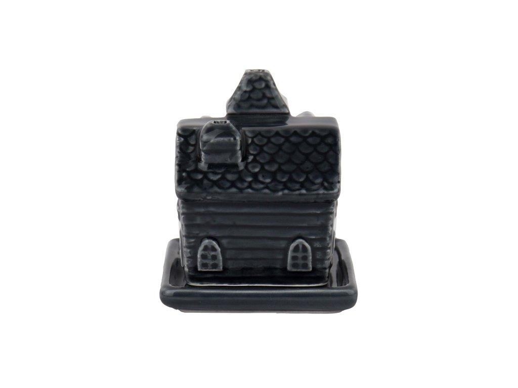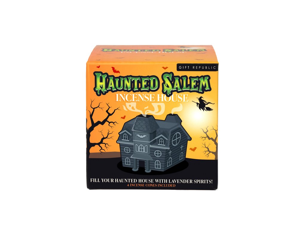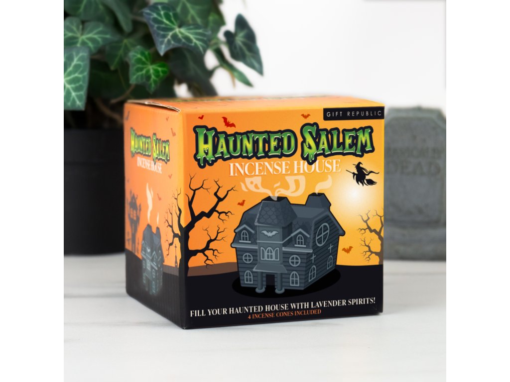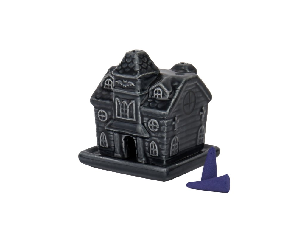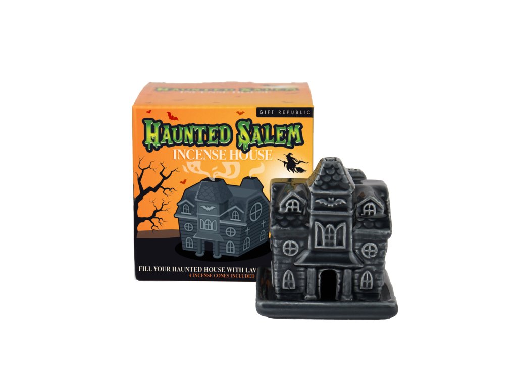 HAUNTED SALEM INCENSE HOUSE Description: Summon the spirit of Salem with the Haunted Salem House Incense Burner! Watch as eerie smoke drifts from the windows, setting the perfect spooky ambiance. Dims: 10x10x10cm Product Info: Includes 1 ceramic incense house, 1 ceramic plate and 4 lavender scented incense cones.Doplňkové parametry