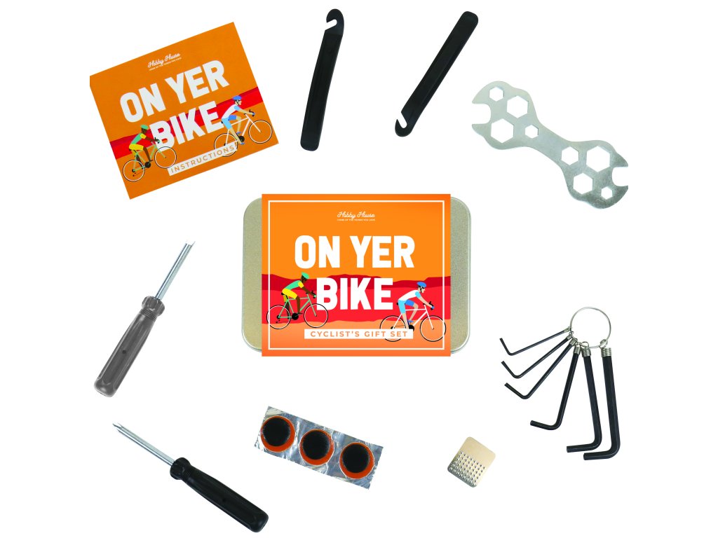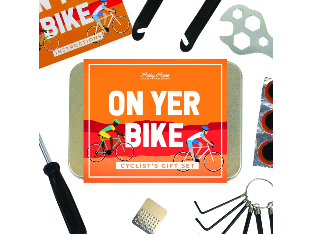 Hobby House – On your Bike Tin Description: Looking for a wheelie good cycling gift set? This tin is packed with all the tools and tips you’ll need to keep you going and on yer bike during your next adventure. Great for all abilities and bike lovers! Dims: 11x16x4.5cm Product Info: Kit includes: 2x screwdrivers, 6x hex keys, 2x tyre levers, 1x multi wrench, 1x set of 3 glue dots, 1x metal rasp and 1x instruction booklet.Doplňkové parametry