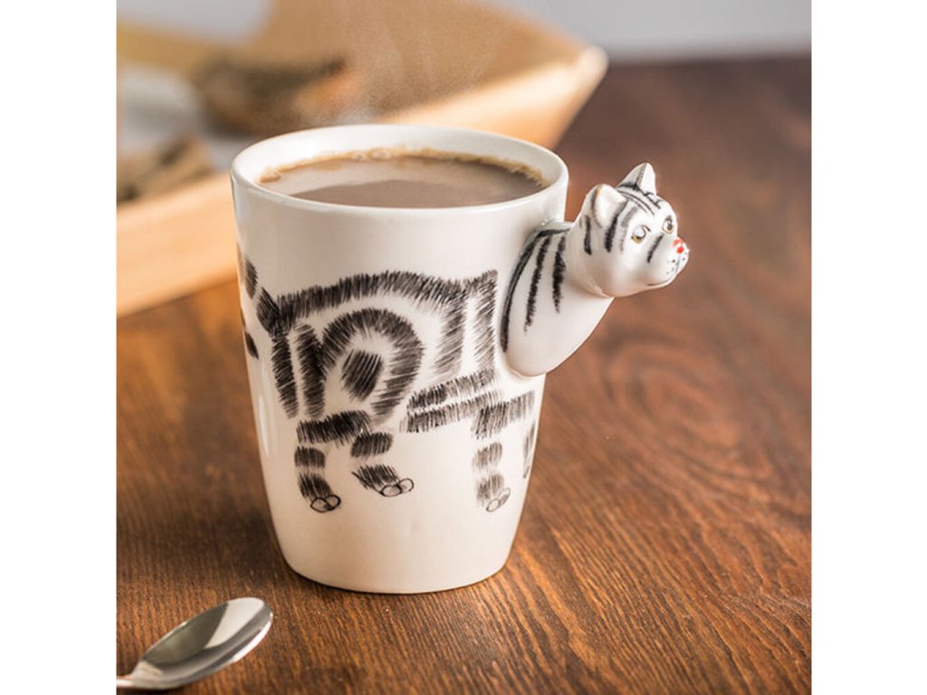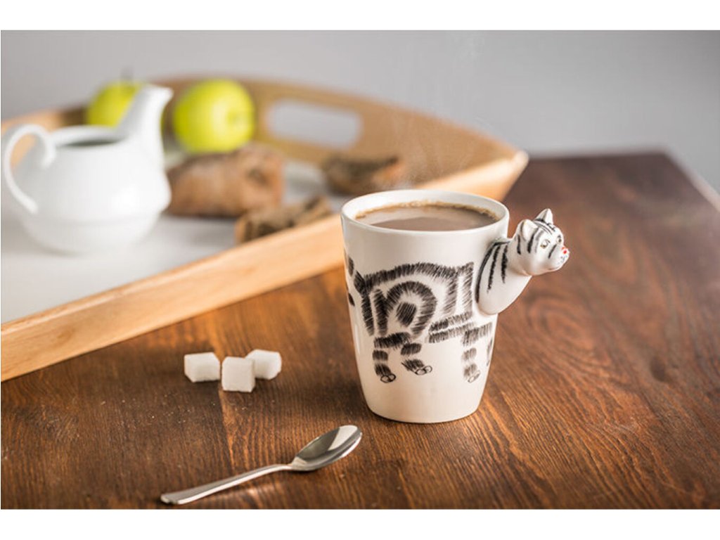 Tento roztomilý hrneček doslova zahřeje a pohladí na duši. Hrnek s 3D zvířátkem - kočka je ideální dárek ne jen pro milovníky zvířátek, ale je to skvělý hrneček na čaj nebo kávu. Na hrnečku je namalované tělo zvířátka a jeho hlava vystupuje z hrnečku a nahrazuje ucho na držení. Jakoby zvířátko doslova vykročilo z hrnečku a chtělo se k Vám přitulit. Krásný hrnek s 3D zvířátkem - kočka je originální dárek k narozeninám.