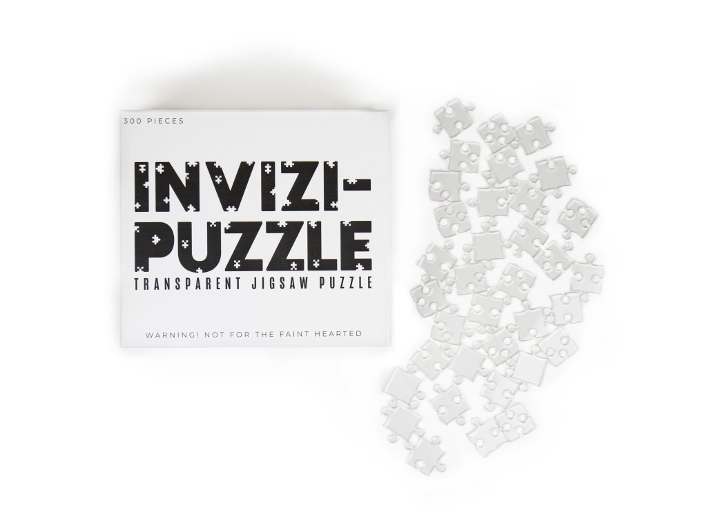 Invizi-puzzle _ Description: This puzzle is made of entirely transparent pieces, making it the perfect gift for any jigsaw enthusiast! Push your puzzle solving skills to the limit with this jigsaw which will definitely test your patience. Dims: 17.5 x 15.5 x 5 cm Product Info: 300 Piece Plastic Puzzle Size of puzzle when complete: 40 x 30 cmDoplňkové parametry