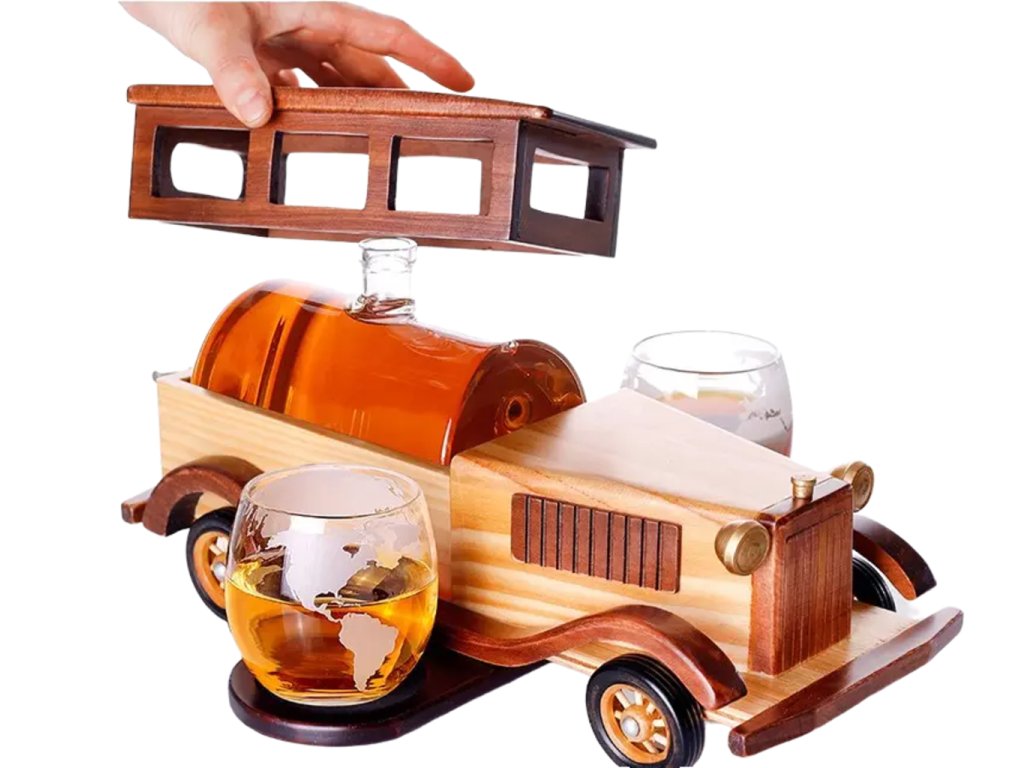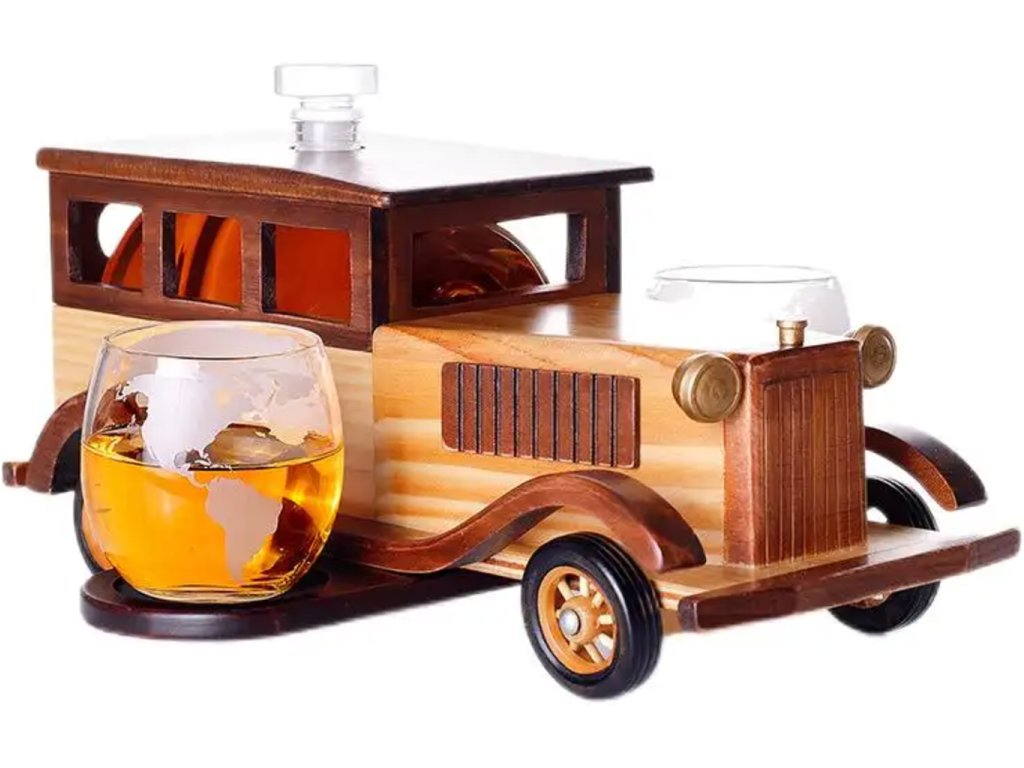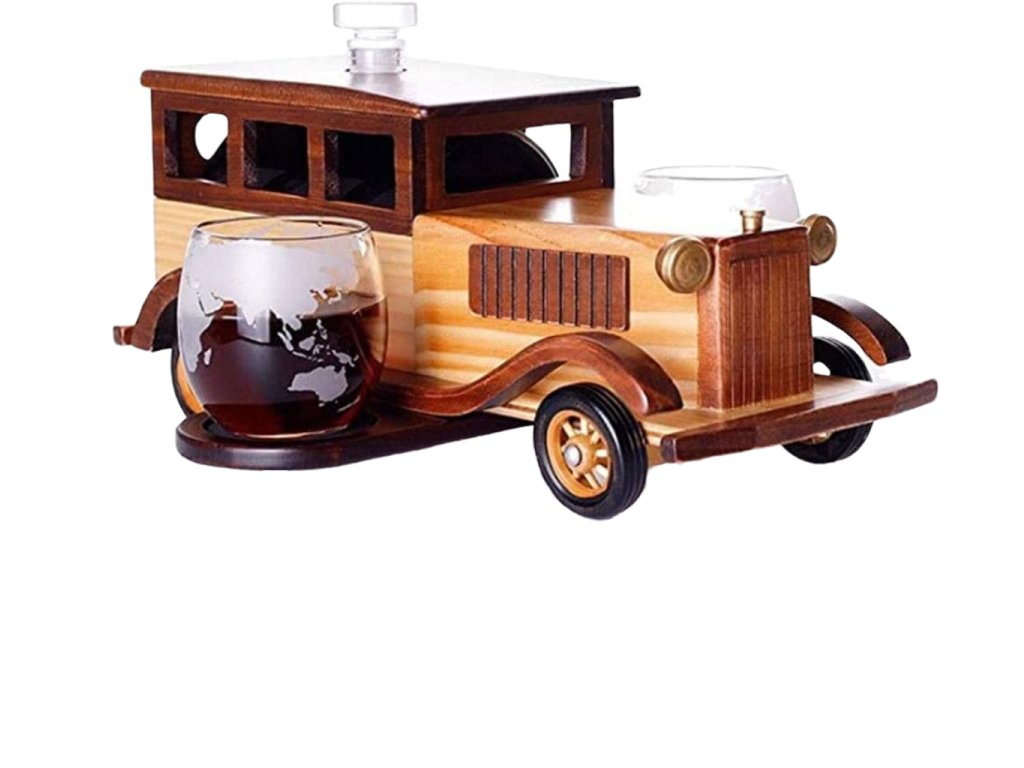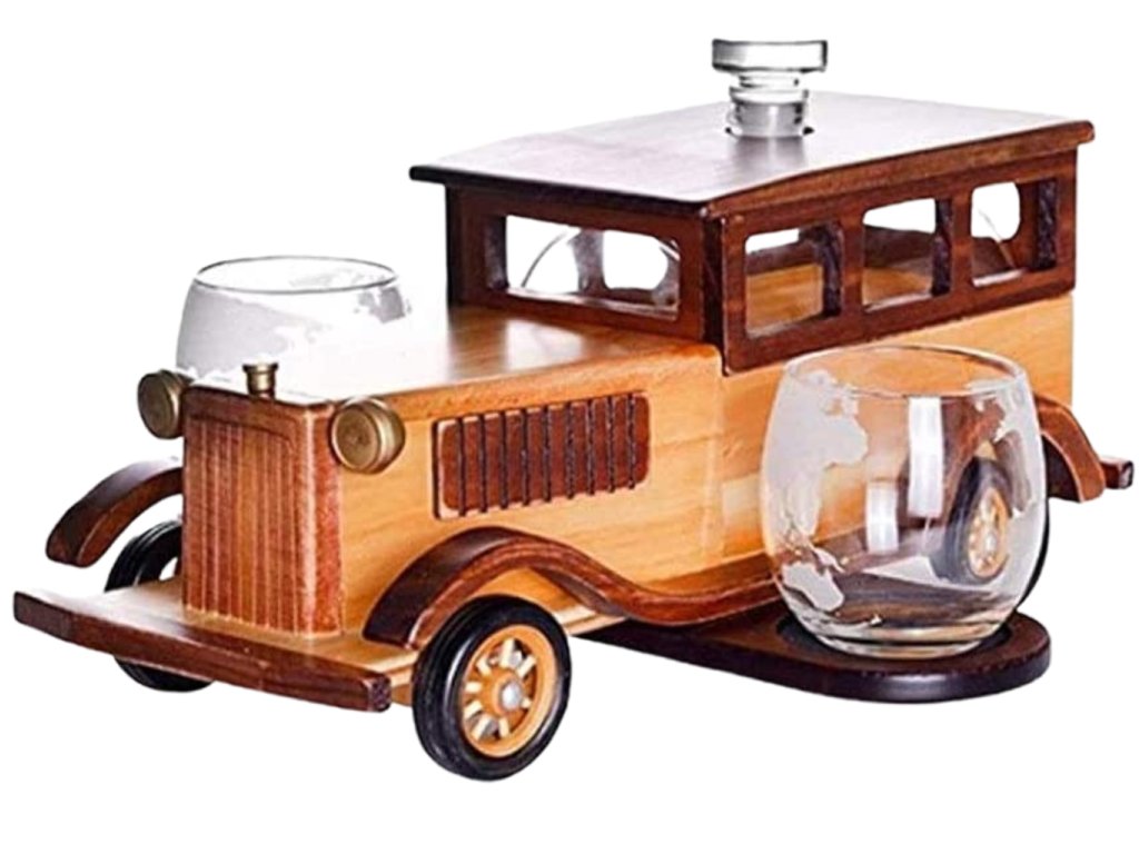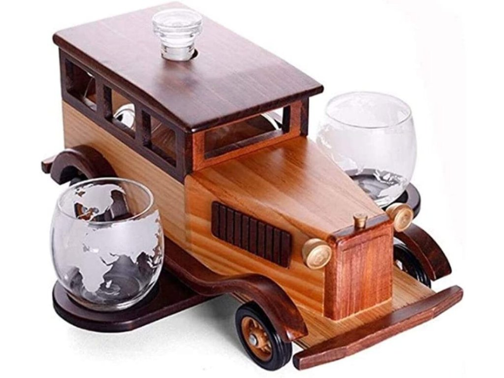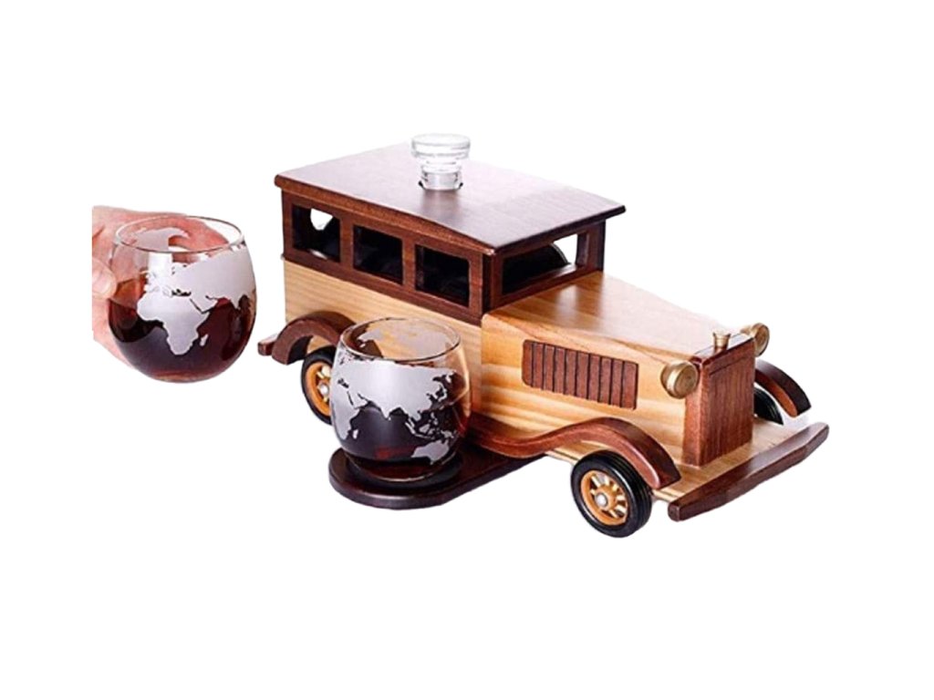 Přeneste se do počátku 20. století s limitovanou edicí Karafa Auto s gravírovanými sklenicemi. Naše jedinečná alternativa ke konvenční křišťálové karafě se jistě stane začátkem konverzace, když nalijete sklenici svým hostům. Jeho velikost umožňuje pojmout celý obsah běžné láhve vína, whisky a většiny lihovin. Tímto způsobem můžete udržet láhve mimo dohled a ohromit své přátele a rodinu. Auto je dodáváno s několika pohyblivými částmi, z nichž všechny k vám dorazí v původním stavu. Tento složitý a přitom robustní kousek by vás měl zbavit běžných starostí s křišťálovou karafou. Ideální jako dárek pro vaše partnery, rodiny a přátele během svátků a jiných slavnostních okamžiků, tato elegantní karafa propůjčuje vašemu barovému stolu auru sofistikovanosti a dobrodružství. Toto jedinečné a elegantní skleněné nádobí je perfektním dárkem na Vánoce, Nový rok, Valentýna, Den otců, svatby, mládenci, výročí, večírky, narozeniny, kolaudace a další.