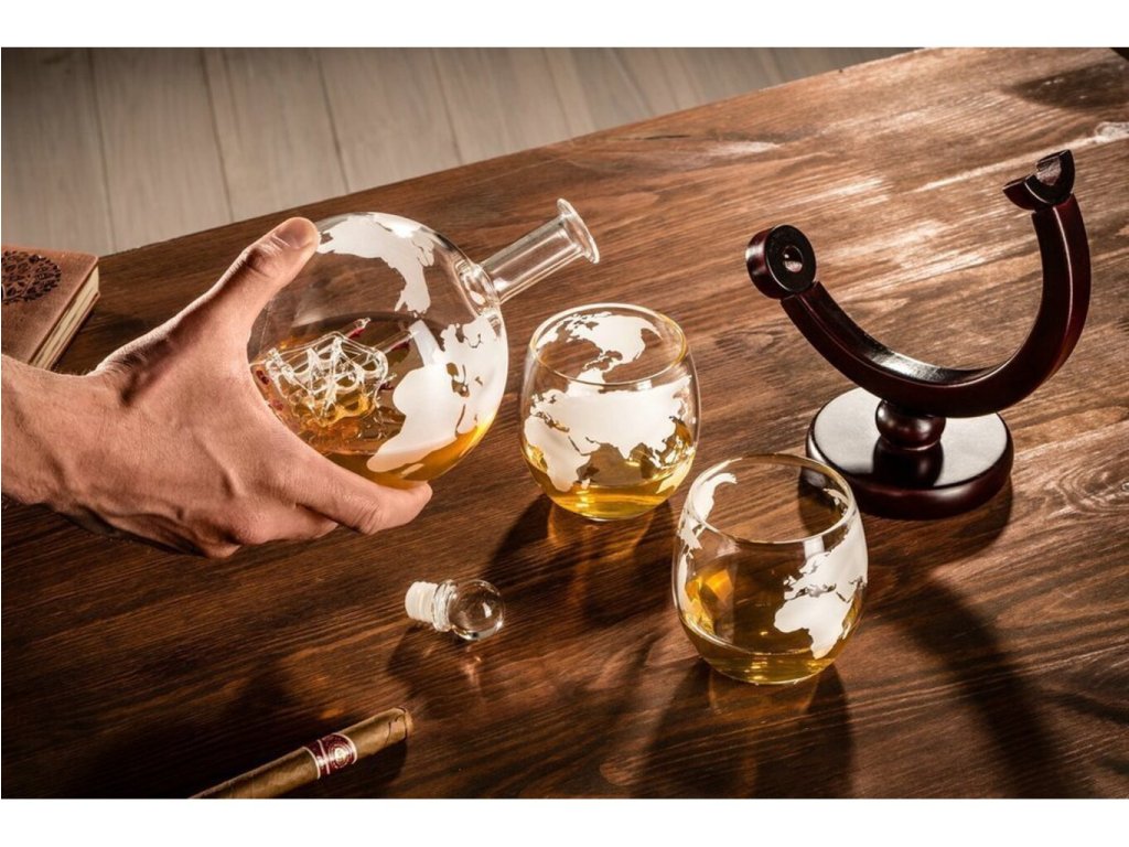 Každý ví, že dobrá whisky se nedá pít jen tak z jakékoliv sklenice. Proto existuje tento vynikající dárkový set Karafa Globus pro všechny milovníky dobré zlatavé whisky nebo bourbonu. Možná nebudete moci vypít celé moře alkoholu, ale tak propracovaná, ručně vyrobená a rytá karafa globus bude ozdobou každé domácnosti Takže ahoj a jděte na plavbu, pamatujte však, že na moři to někdy může hodně houpat a nemusí to být mořská nemoc;) Její tvar umožňuje lepší provzdušnění a proto si můžete vychutnat aroma vašeho oblíbeného pití tak, jak jej její výrobce původně zamýšlel. Stylová rytá karafa glóbus s plachetnicí uvnitř.
