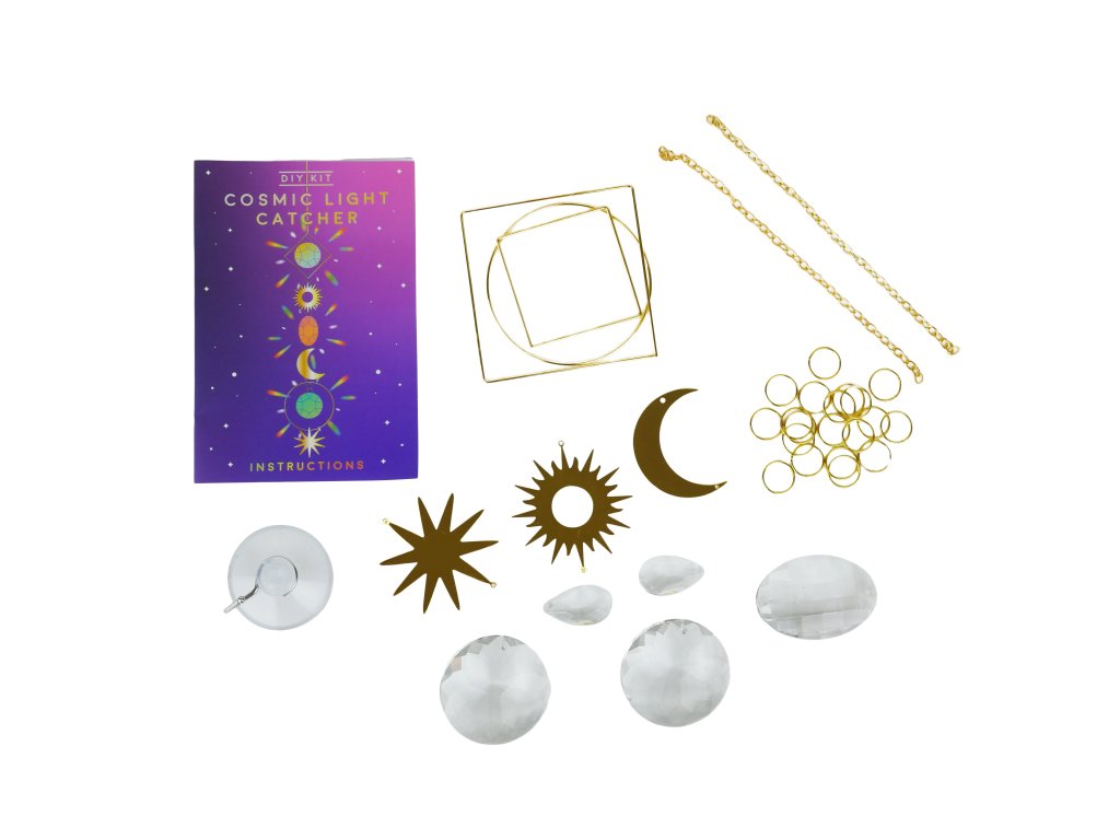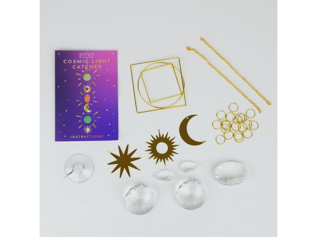 Cosmic Light Catcher – DIY Kit Discover the enchanting new world of rainbows and colour in any room. Unleash your creativity and immerse yourself in the captivating beauty of the universe as you create your own celestial-inspired window cosmic light catcher! Dims: 10x17x3cm Product Info: 3x light prisms, 2x small light prisms, 3x cosmic decorations, 2x 15cm chains, 20x small hoops, 3x large hoops, 1x suction cup with hook and 1x instruction booklet.Doplňkové parametry