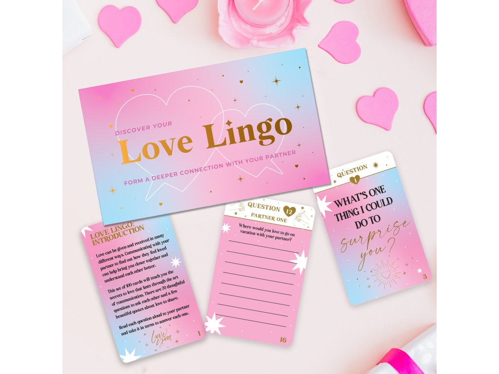 Love Lingo Cards Description: Are you ready to fall deeper in love? Form a deeper connection with your significant other with this set of 100 cards of thought-provoking questions and romantic love quotes to share. Packaging: Cardboard Box Dims: 9x16x3.5cm Product Info: 100 CardsDoplňkové parametry
