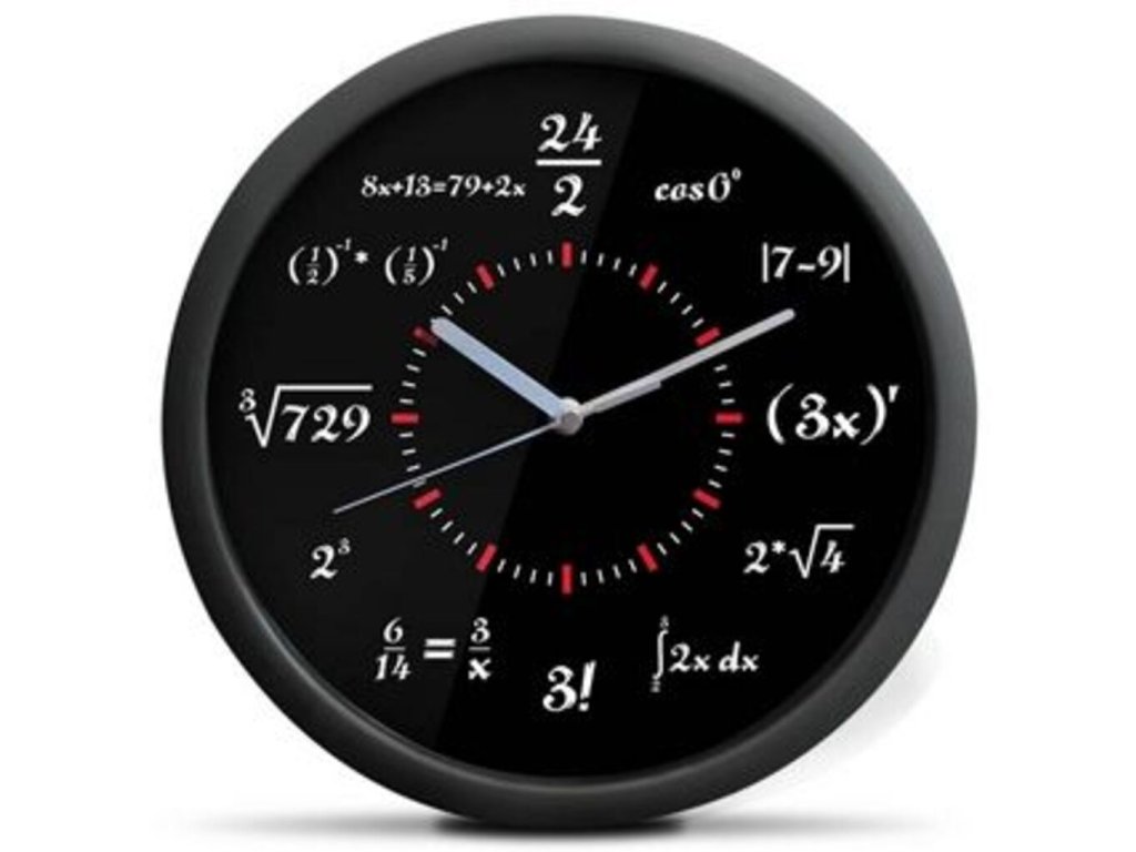 Máte doma matematika nebo jen chcete vypadat odlišně od zbytku světa? Díky těmto matematickým hodinám se Vám to rozhodně podaří. Nač mít na hodinách klasické číslice, když můžete mít každé číslo vyjádřeno pomocí jiného matematického zápisu? Těmito hodinami ozvláštníte Váš dům o originální dárek.