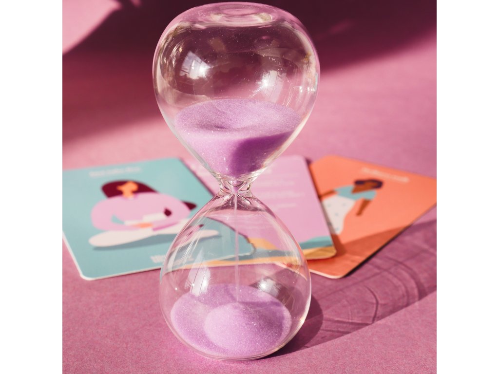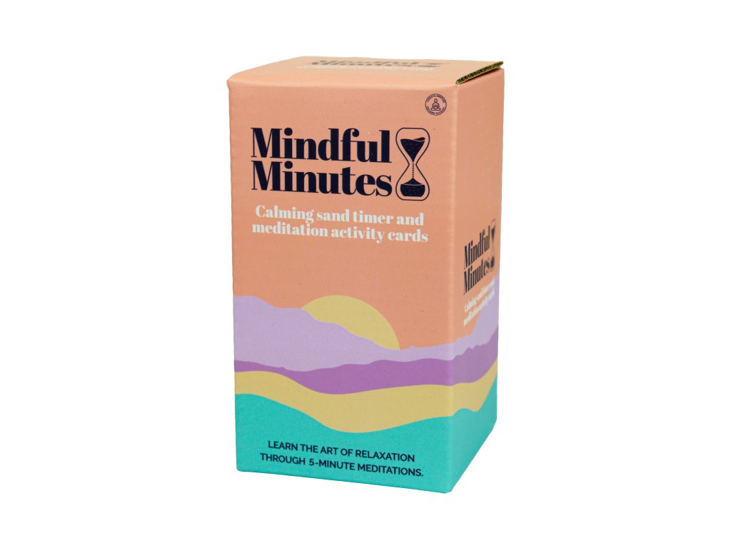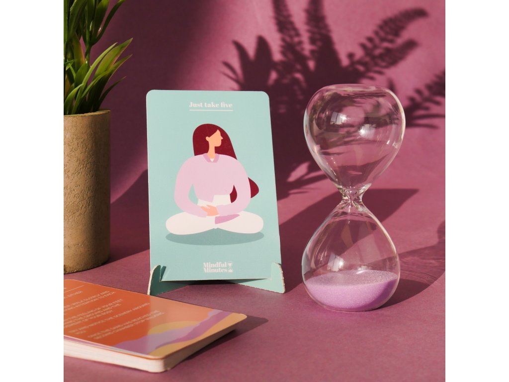 Product Name: Mindful Minutes Do you need some calm and relaxation in your life? Mindful Minutes is designed to provide you with some much-needed relaxation time, this set comes with a 5-minute sand timer and 20 cards with tips and guidance on how to find more mindfulness in your life. Included: 1x glass sand timer, 20 meditation cards and an eco-friendly card stand. Dims: 12x7x7cmDoplňkové parametry