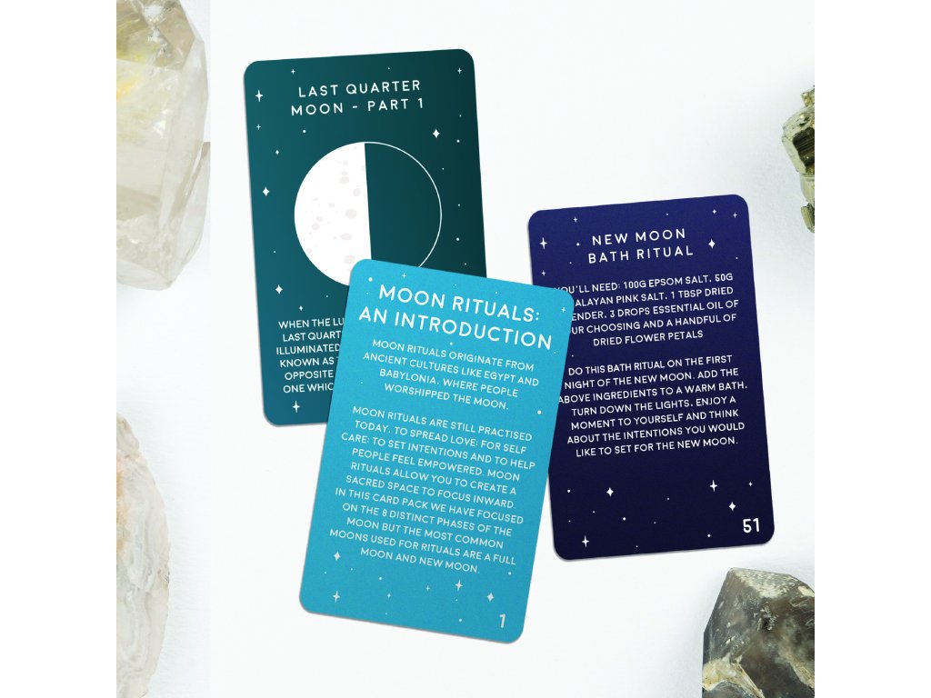 Moon Ritual Cards Description: Are you intrigued by the movements of the moon? Learn how to harness the power of the moon into your life with these cards. Featuring rituals, tips and affirmations to help you connect to the power of the moon. Dims: 23.5x21x16cm Product Info: 100 cardsDoplňkové parametry