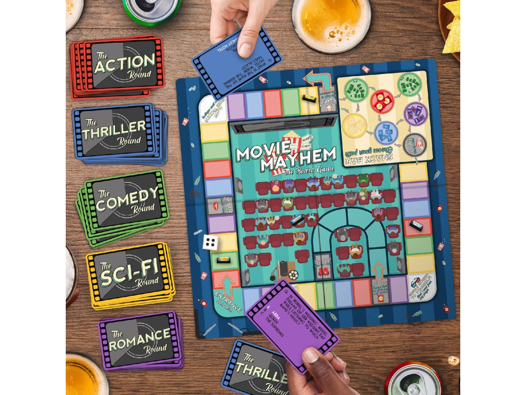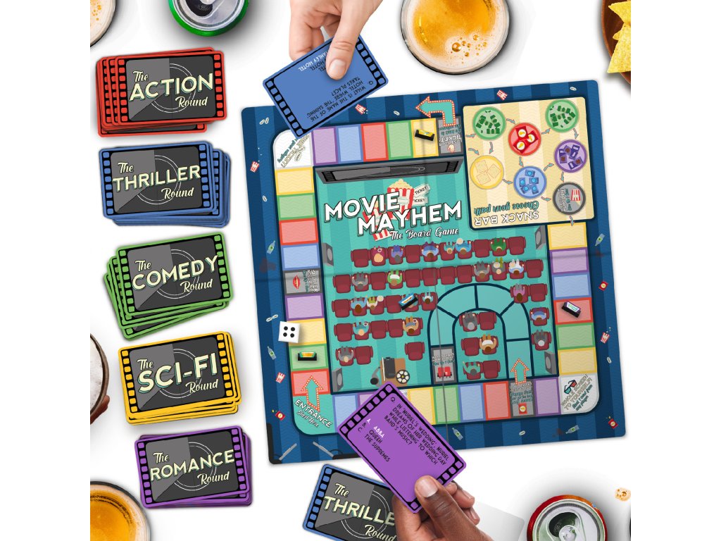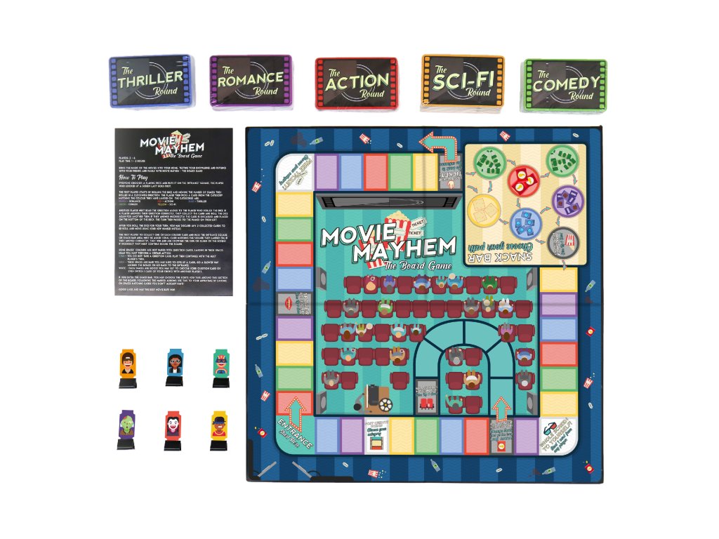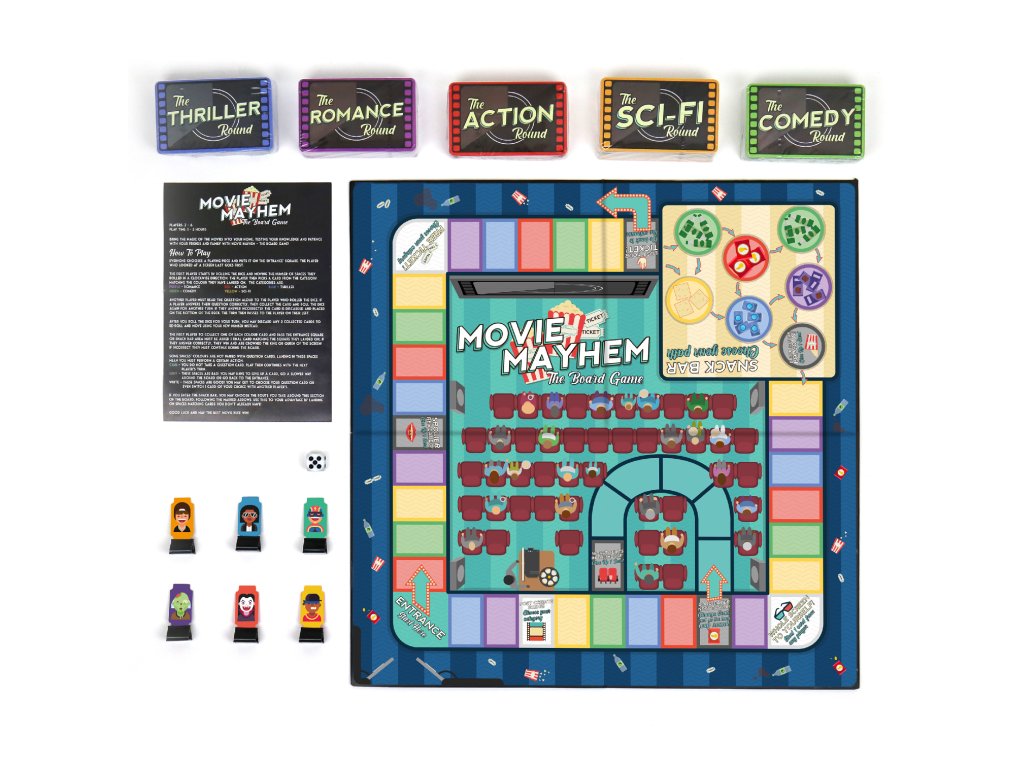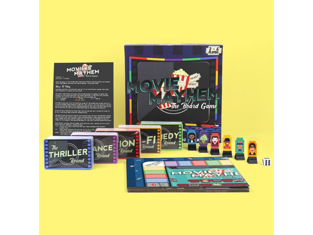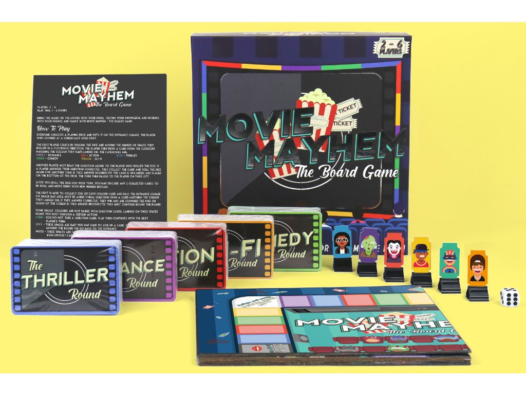 Movie Mayhem Board Game Description: The ultimate board game for any movie buff, travel through a movie theatre answering trivia questions from 5 different genres to win. Be careful not to drop your popcorn as it’ll slow down your game, but free tickets and post credit scenes will give you a boost! Dims: 24.6 x 24.6 x 6.7 cm Product Info: 1x Board, 500x trivia cards, 6x game pieces, 1x 6 sided dice, instructionsDoplňkové parametry