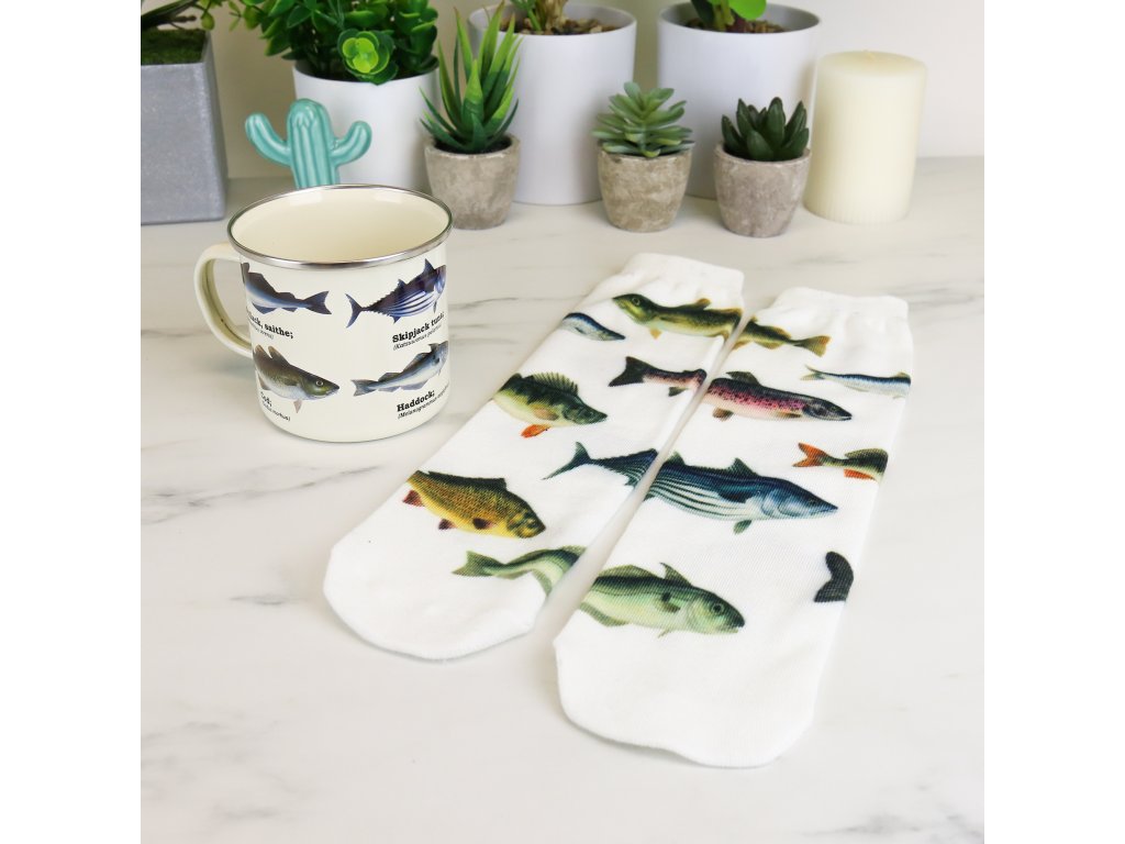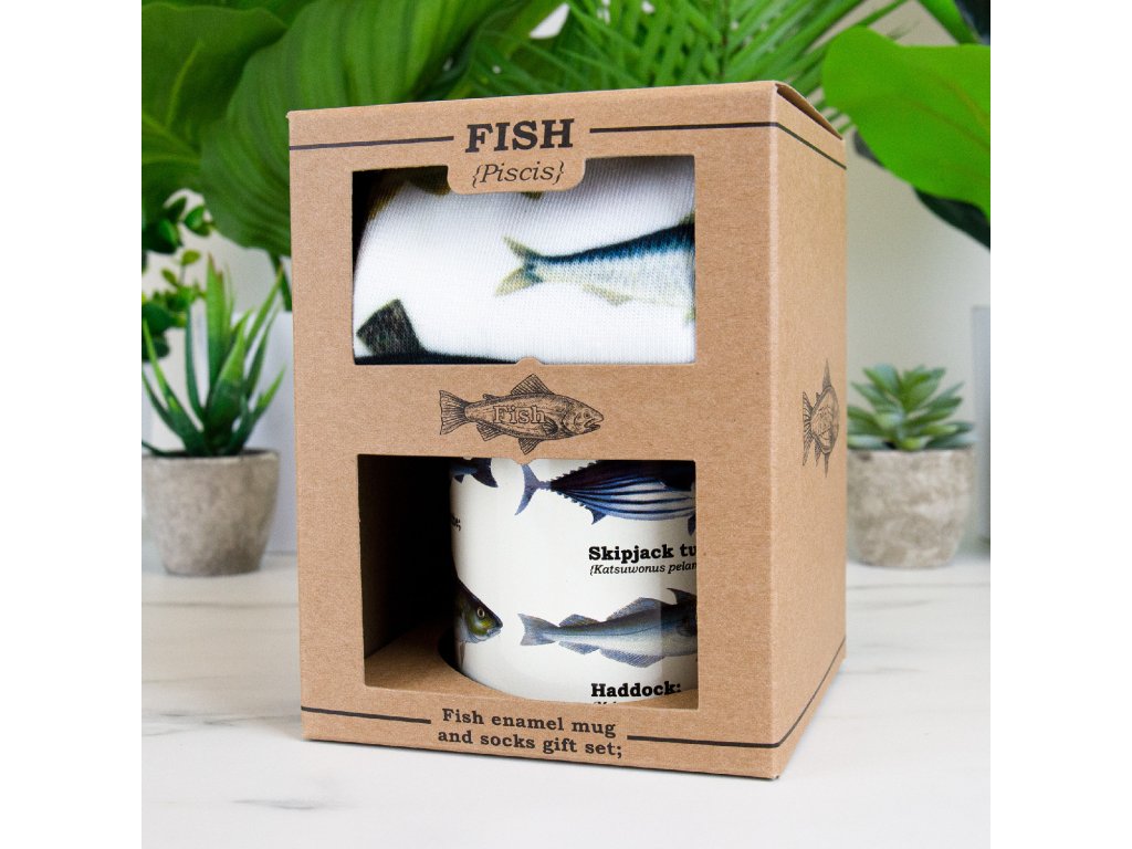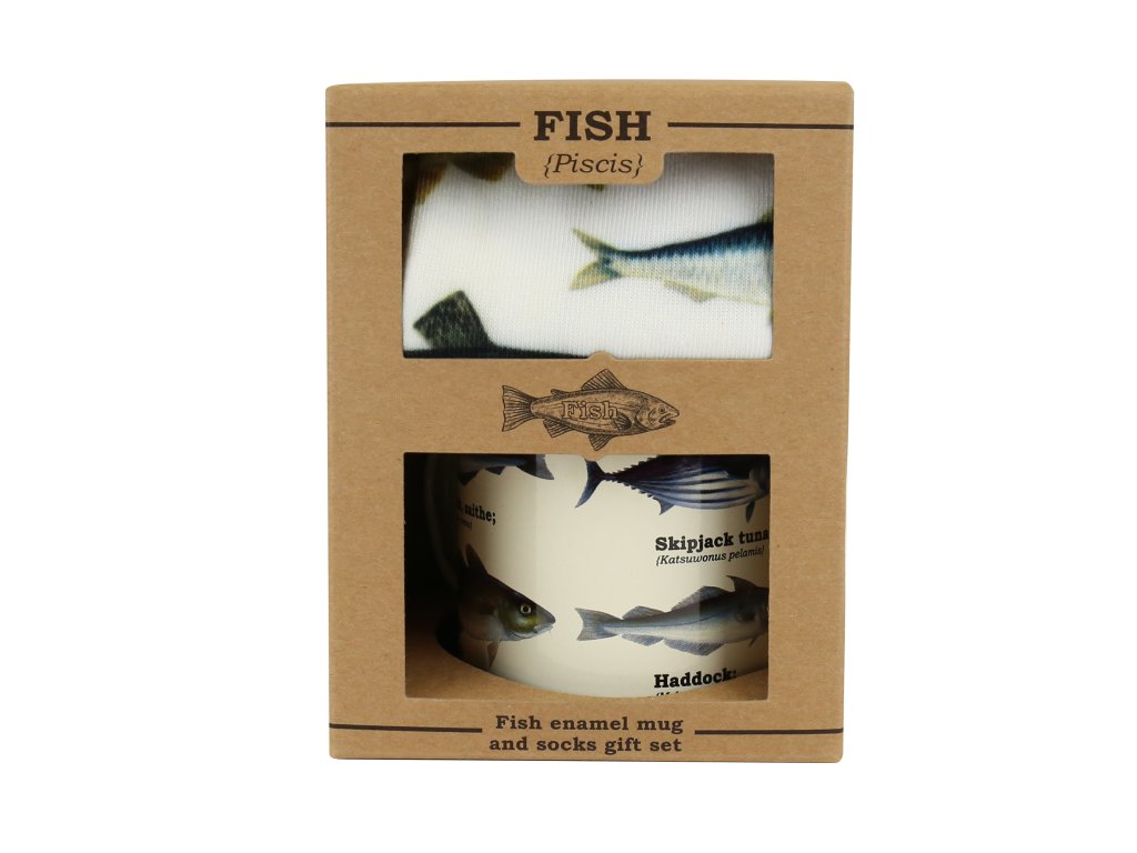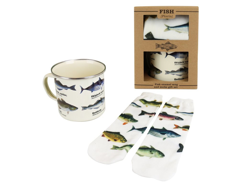 Fish Enamel Mug and Socks Gift Set Description: Looking for a reel-ly good gift set for the fisherman or woman in your life? The fish enamel mug and socks gift set is fin-tastic for a long days fishing, as you sit back and wait for your catch of the day. Socks are size UK 7-11 EU 40-45 US 7.5-11.5 Dims: 16x12x12cm Product Info: Includes enamel mug and socks.Doplňkové parametry