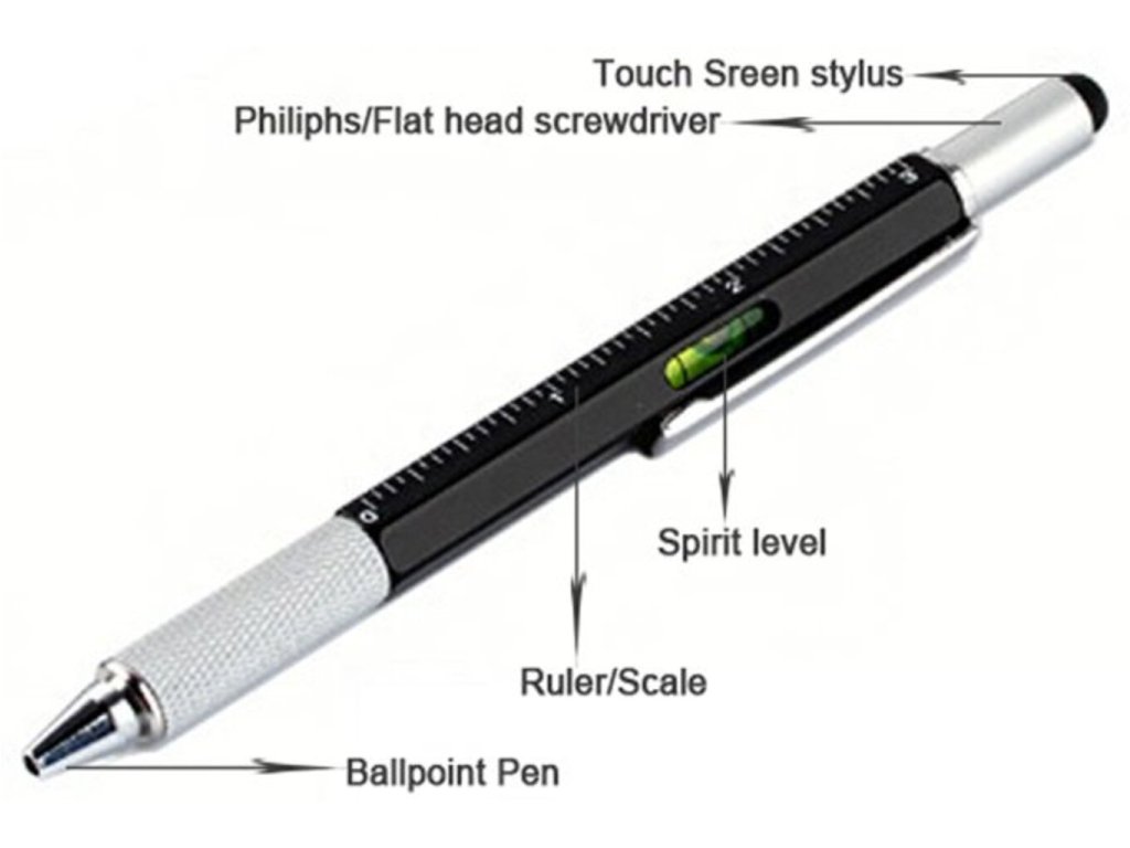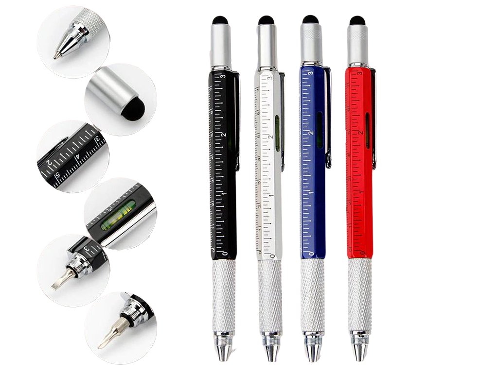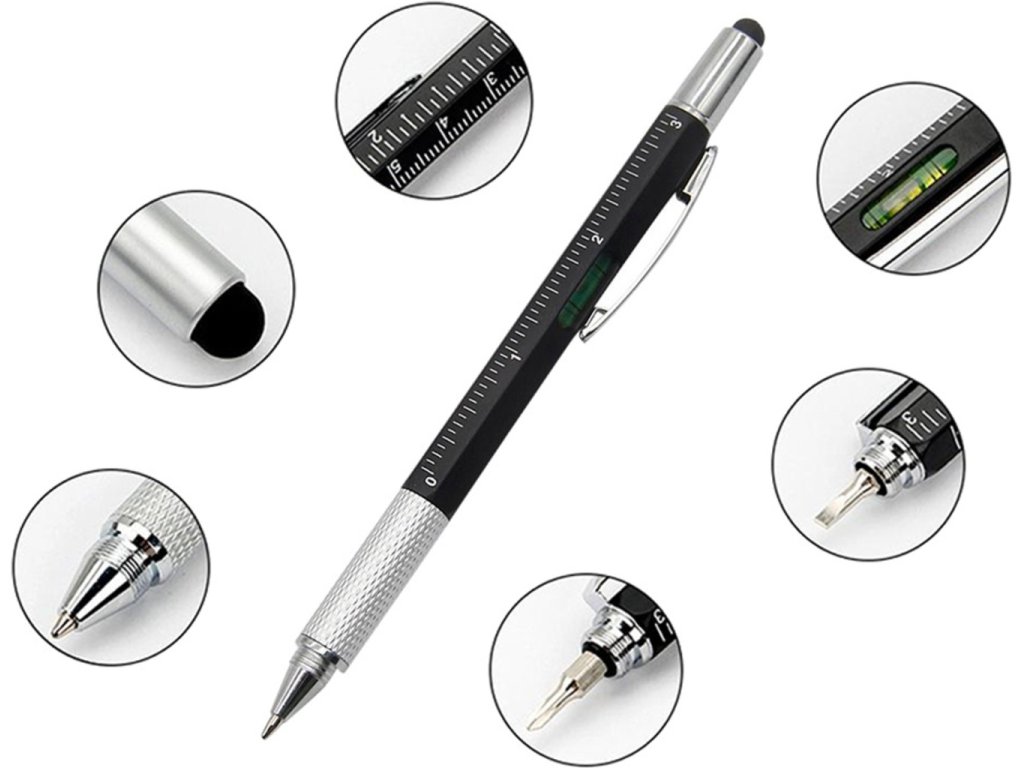 Jste rádi originální za každé situace? Chcete mít u sebe vždy propisku, která je něčím výjimečná? Pořiďte si multifunkční propisku 6v1. Multifunkční propiska 6v1 je nejen klasickou propiskou, ale má v sobě také zabudováno mnoho funkcí. Propisku můžete používat jako stylus pro dotykové obrazovky, můžete s ní klasicky psát, šroubovat nebo měřit, zkontrolovat rovnováhu, a to vše budete mít v jedné dokonalé unikátní věci. Kdo by to neuvítal? Tip na výborný dárek na narozeniny.