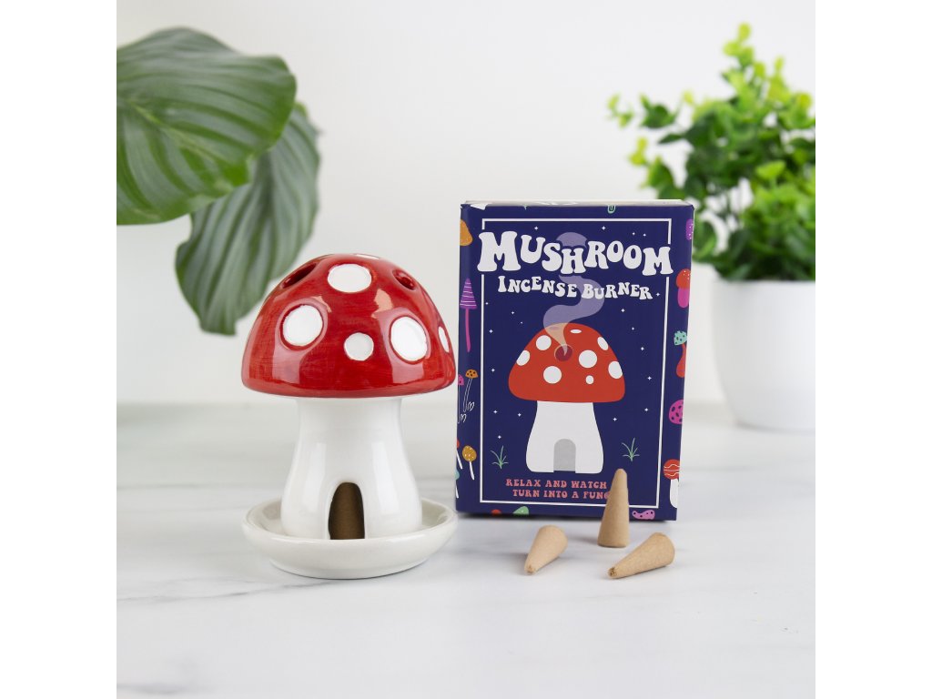Mushroom Incense Burner Description: Transform this mushroom into a Fun-GI by filling it with incense. Enjoy the Sandalwood scent and be transported to another world. Packaging: Fluted Cardboard Box Dims:12x8.5x8.5cm Product Info: 1x Mushroom, 1x Resting Dish & 4x Incense ConesDoplňkové parametry