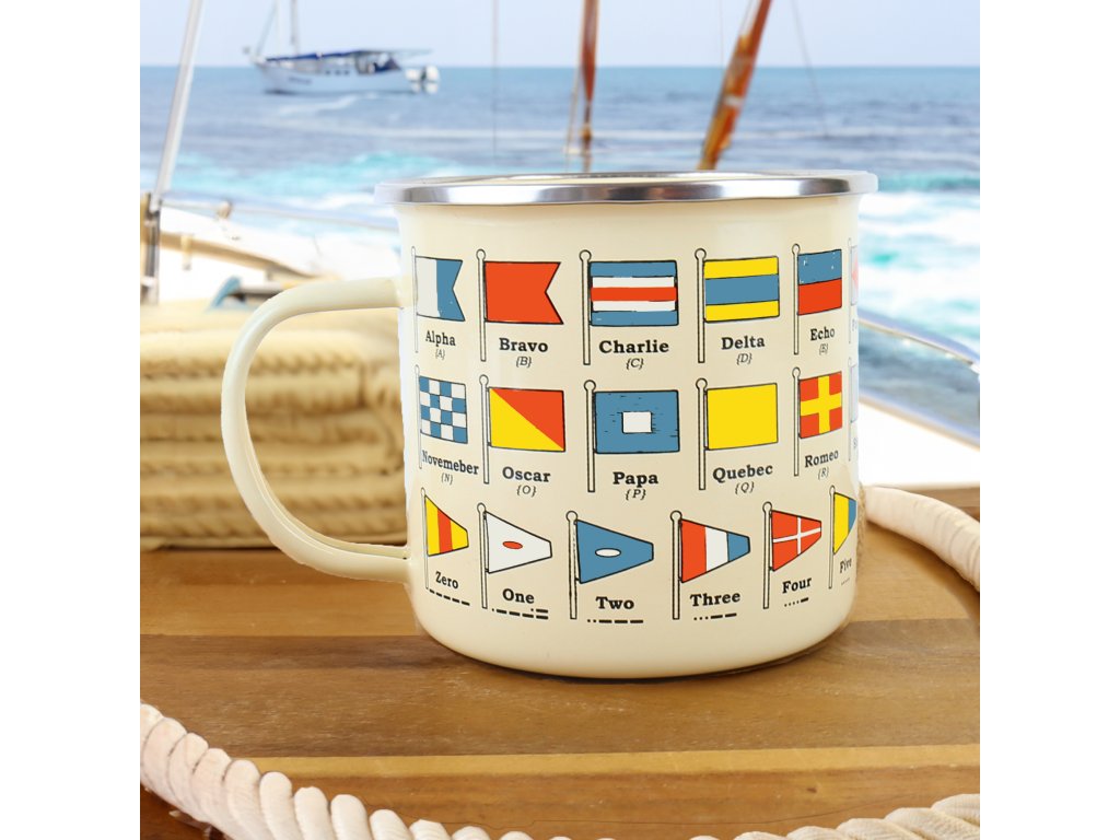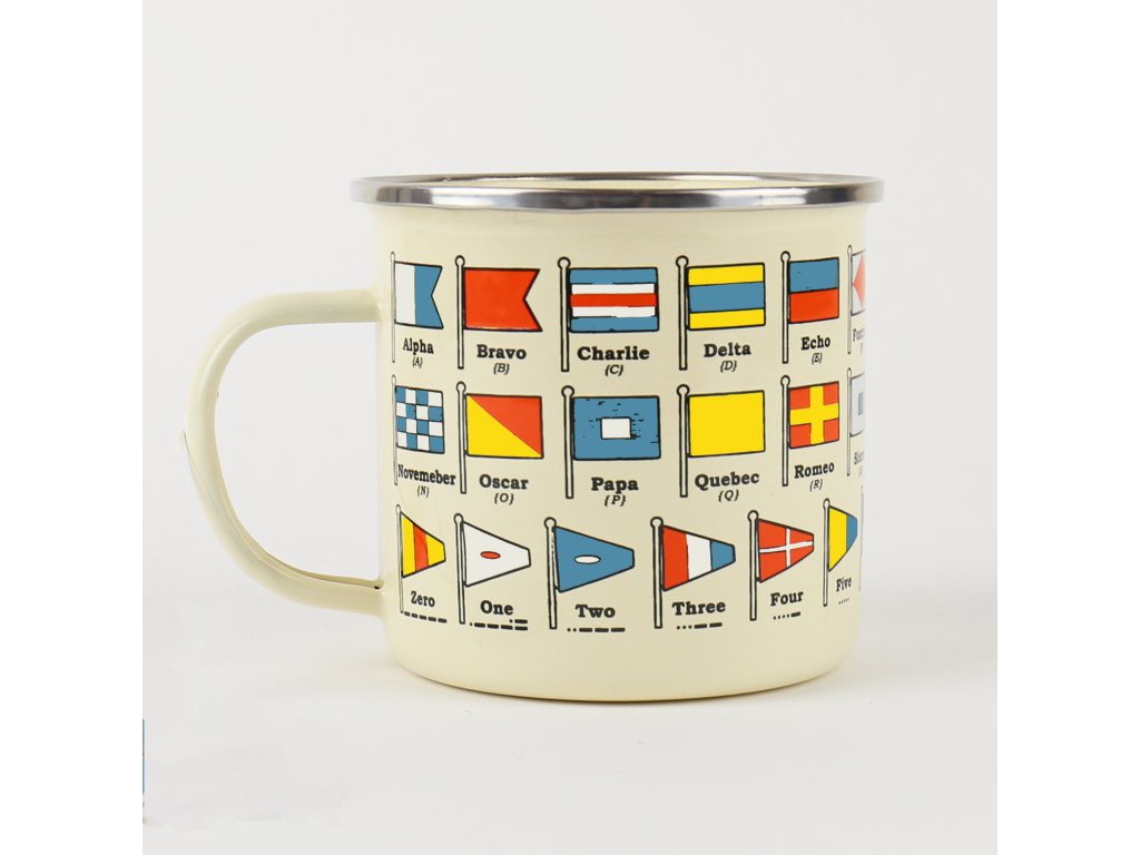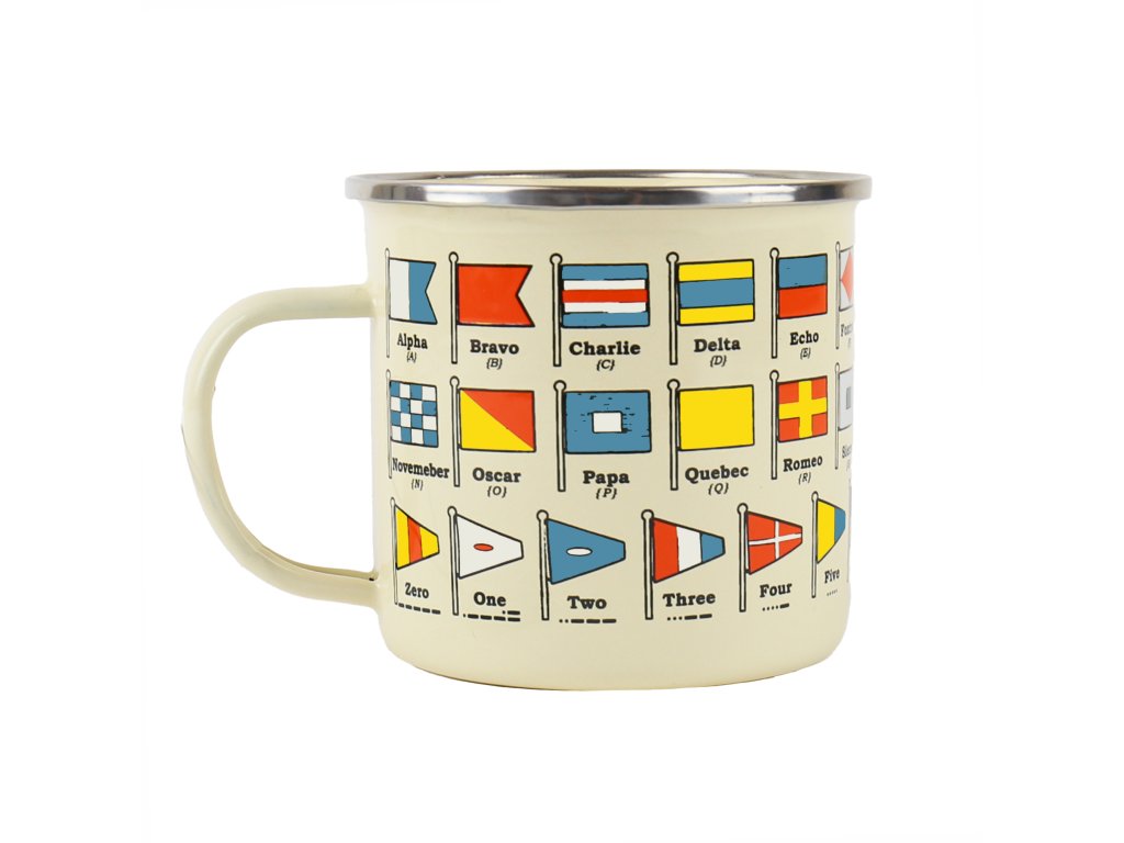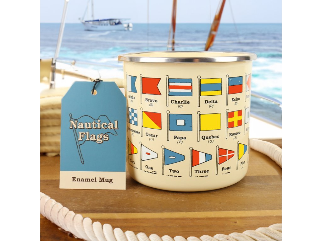 Nautical Flags Enamel Mug Description: Set sail with our nautical flag enamel mug. Dive into your favourite hot drink while embracing the spirit of the sea. Dims: 13 x 10 x 9cm Product Info: 500ml / 17ozDoplňkové parametry