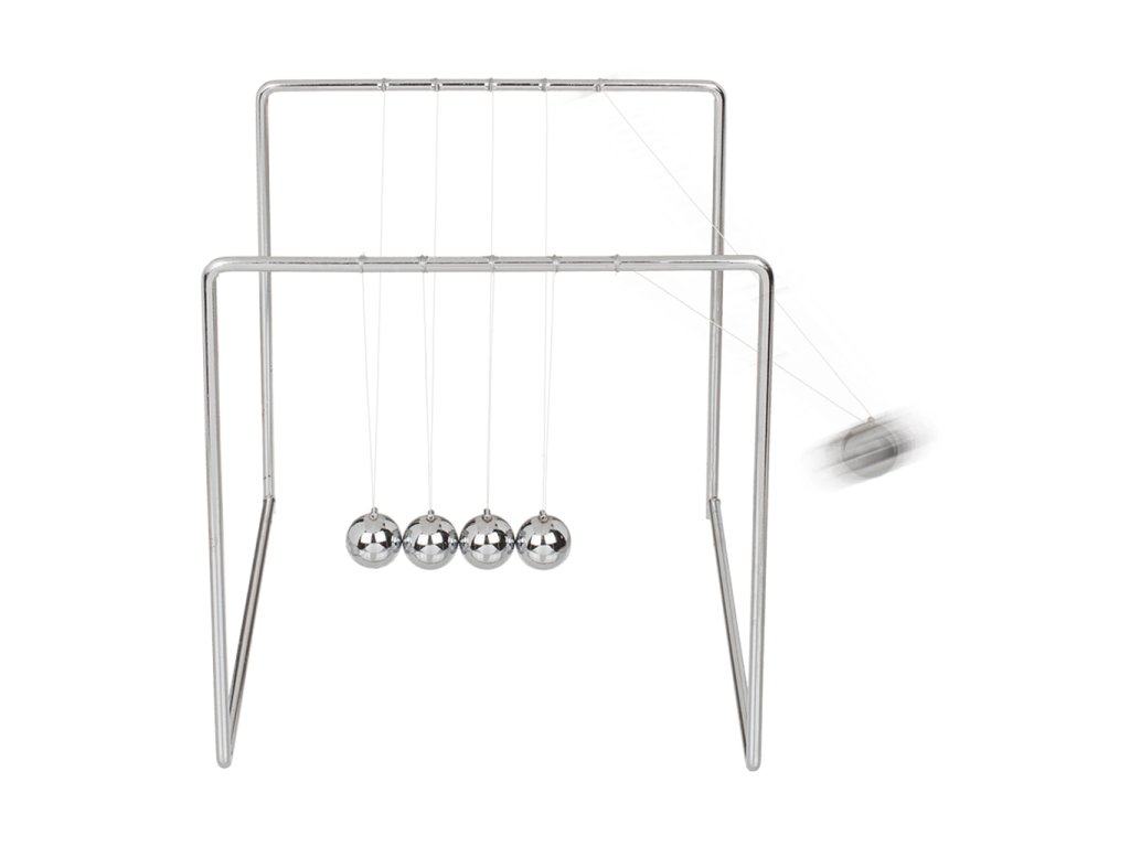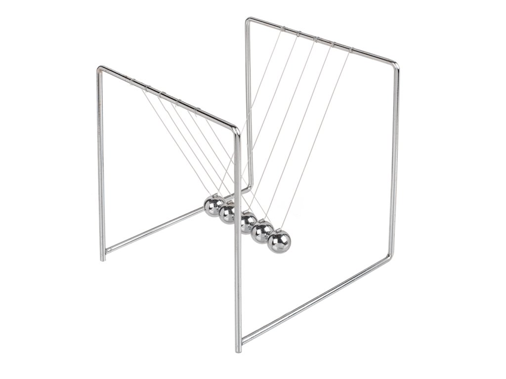 Jste přepracovaní a často pracujete dlouho do noci? Pořiďte si na stůl uklidňující Newtonovu houpačku! Jedná se o kuličky z nerezové oceli zavěšené na tenkých drátcích. Od prvotního kmitnutí se díky principu předávání kinetické energie kuličky od sebe navzájem odrážejí a kmitat vydrží opravdu velmi dlouho. Stylový dárek do každé pracovny.