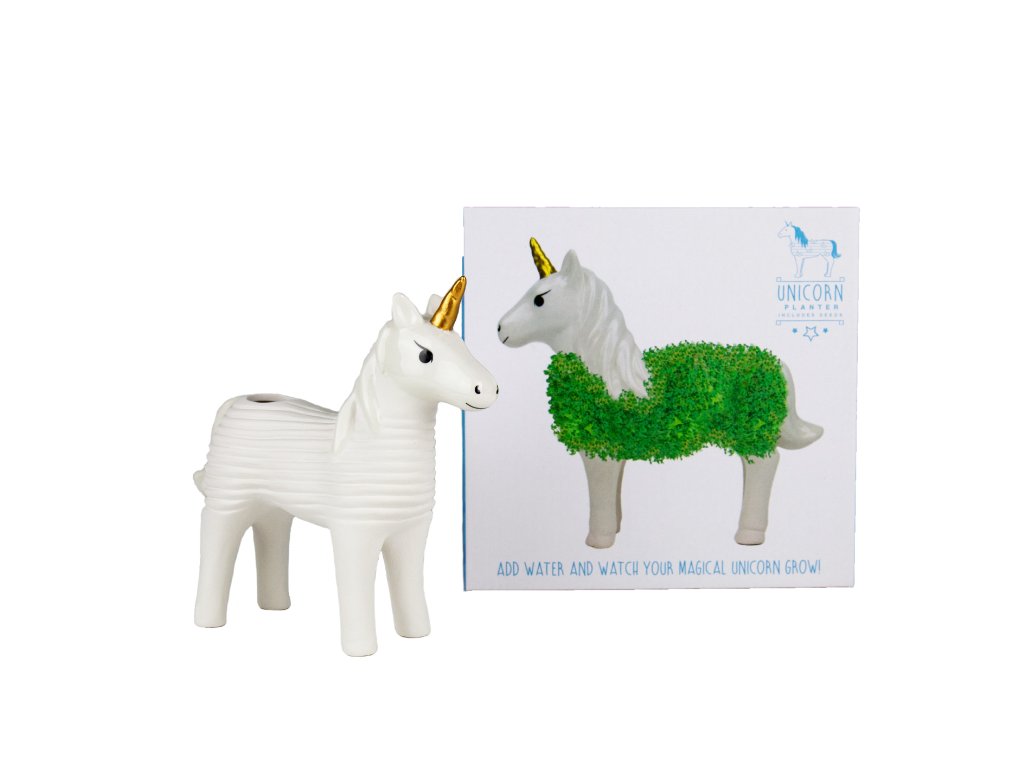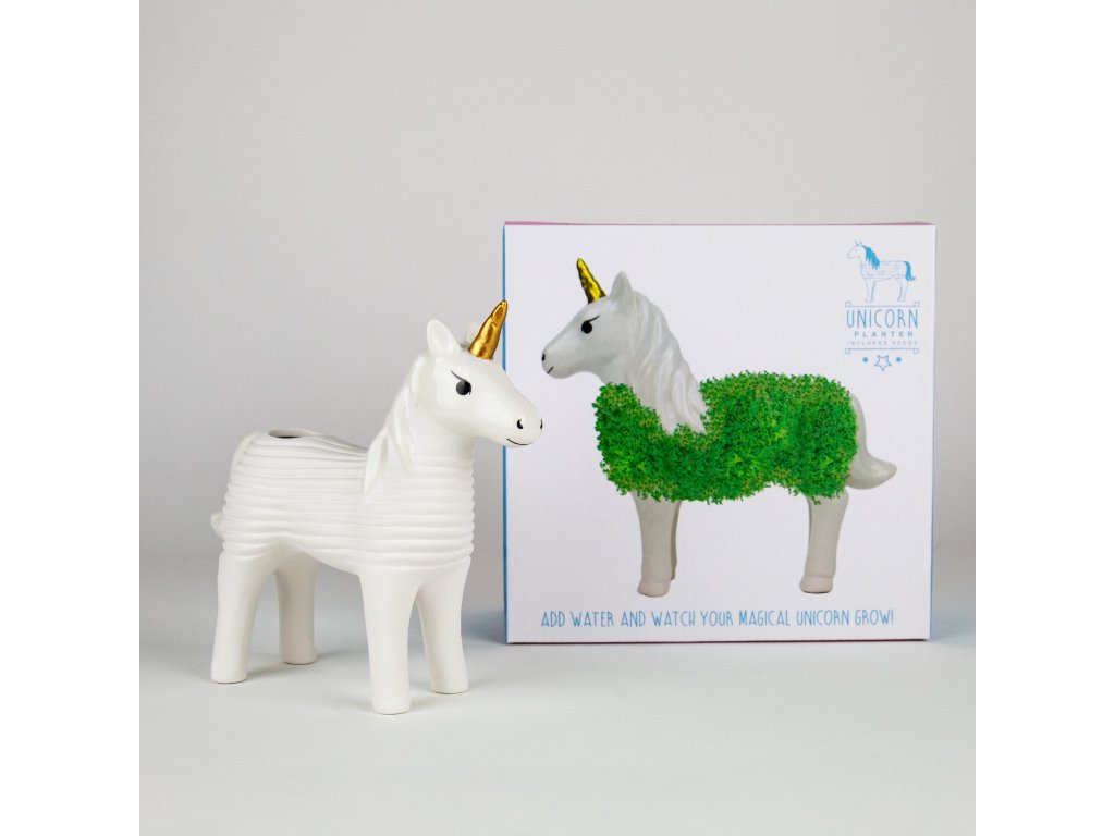 _ Description: Always wanted to see a fluffy unicorn? Well with this Unicorn chia pet you can grow your own! Chia seeds included to let the magic begin. Dims: 200x195x90mm Product Info: Ceramic planter with seeds. Polystyrene insertDoplňkové parametry