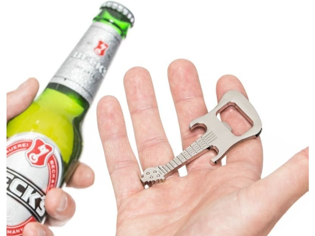 Váš kamarád nebo bratr je kytarista a chcete mu udělat radost originálním dárkem k svátku? Pak zvolte jako ideální dárek tento jedinečný otvírák kytara. Stylový otvírák ve tvaru kytary je inspirující nástroj pro každého kytaristu, který si občas rád dá pauzu od hraní a otevře si lahvinku piva. Otvírák kytara je originální dárek pro všechny pivaře, kteří hrají na kytaru.