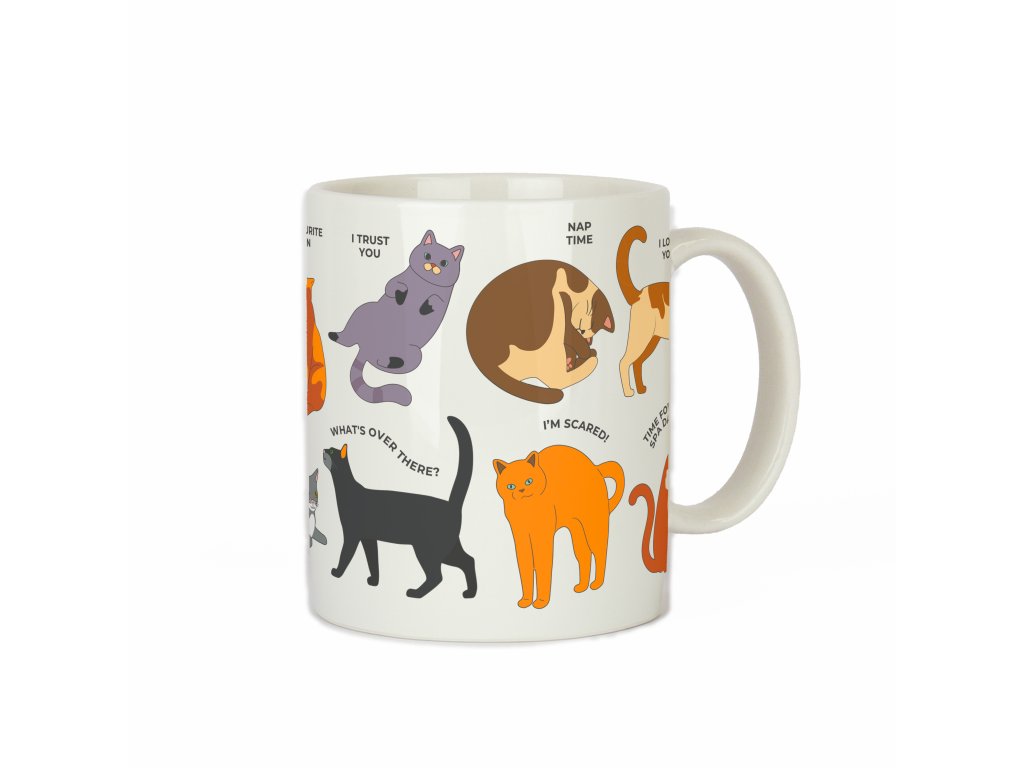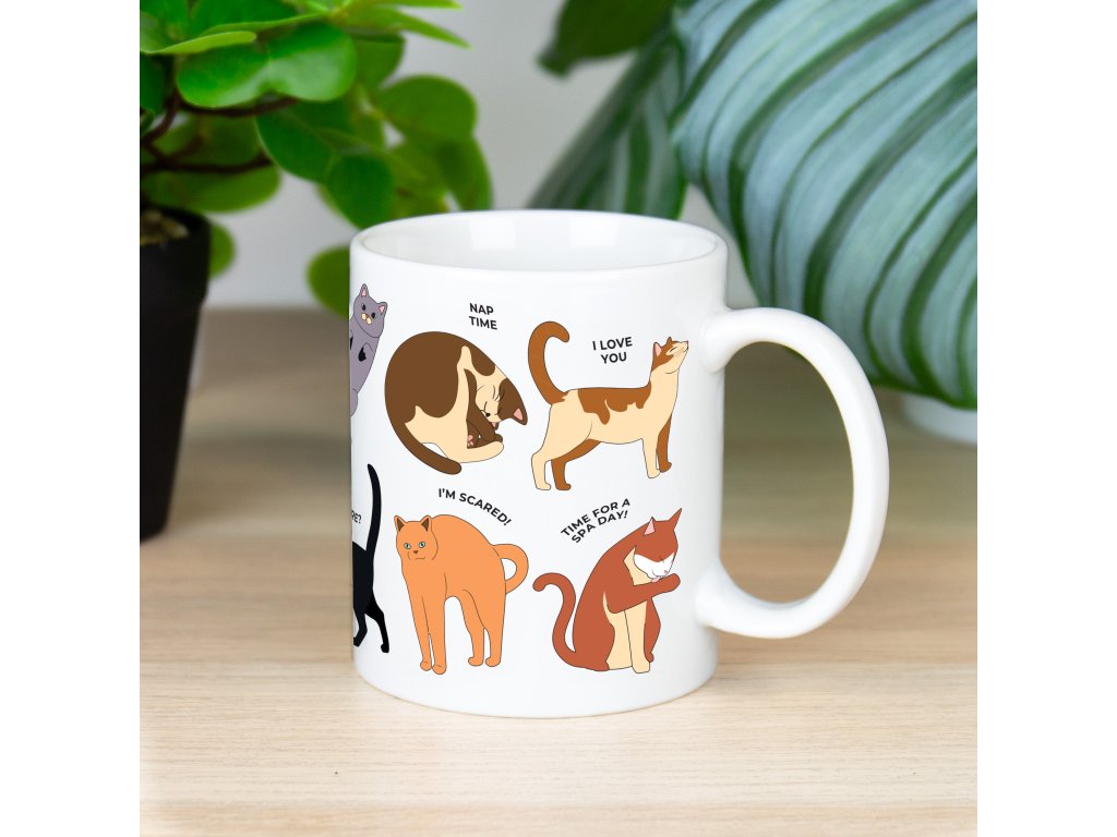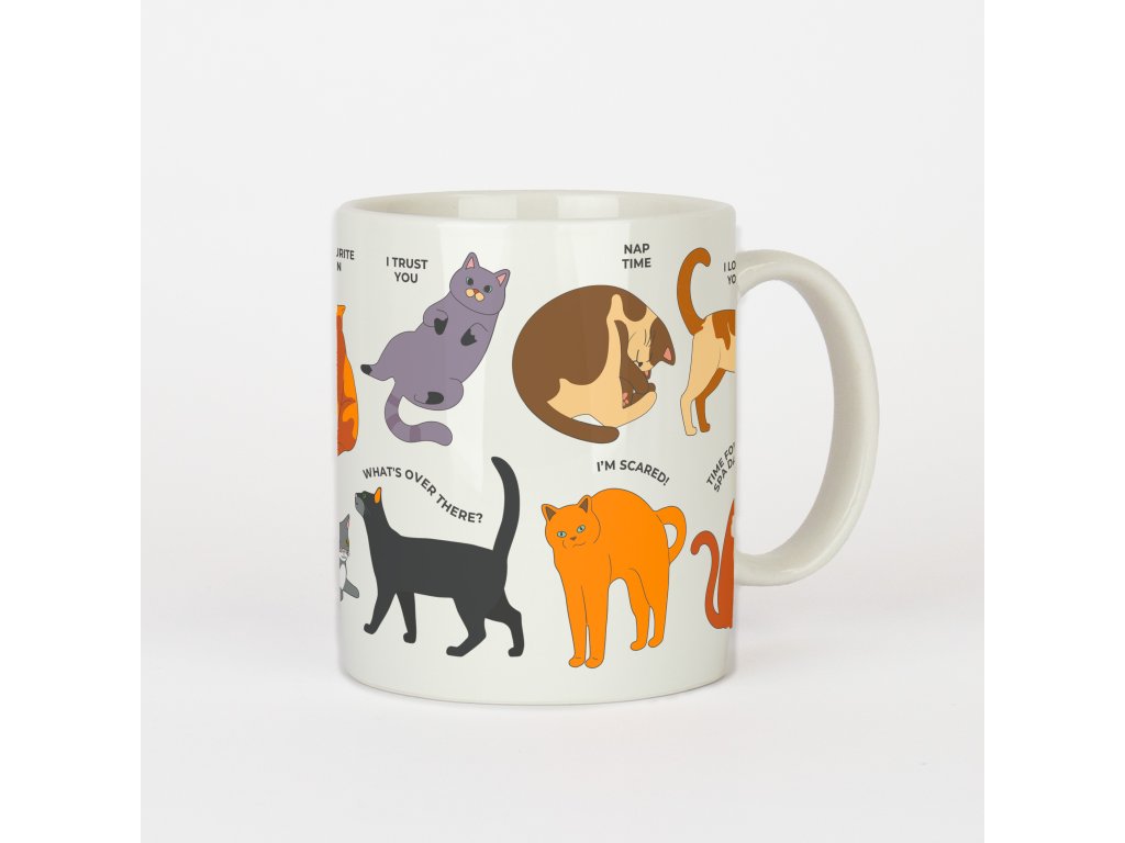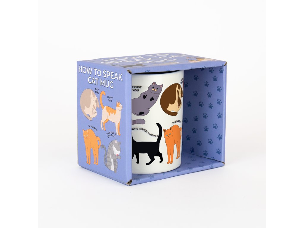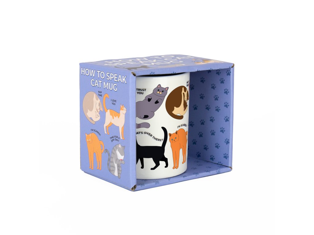 How To Speak Cat Mug Description: Get whiskered away into the world of cats! Start your journey towards becoming a cat whisperer and discover your feline companions behaviour with every sip. DIMENSIONS: 11.5x10x8.5cm INFO: 350ml / 12ozDoplňkové parametry
