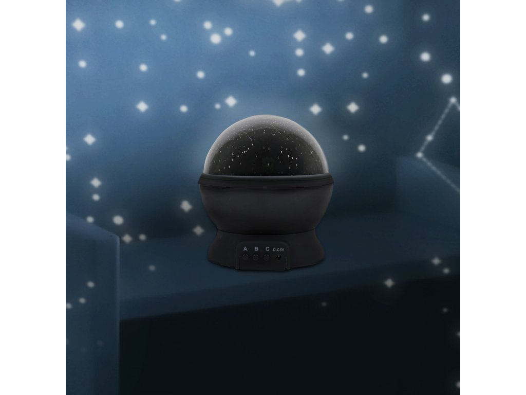 _ Description: Enjoy the stars every evening inside the comfort of your home! Watch the stars and constellations shine bright and glide across your room. Dims: 14x13x13cm Product Info: Battery or USB operatedDoplňkové parametry