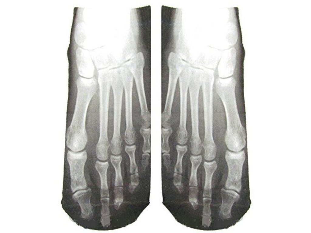 Víte, jak vypadají Vaše nárty pod rentgenem? Přesně tak, jak vypadají tyto stylové ponožky kostra. Pohodlné bavlněné ponožky mají na nártech potisk rentgenu kostry. Dejte si jen pozor, abyste s nimi někoho nevyděsili. Skvělé ponožky s legračním potiskem uvítá každý. Mějte své nohy v teple a pohodlí. Ponožky kostra jsou originální dárek pro všechny náruživé nožky. Ideální dárek k svátku, nebo na strašení na Halloween.