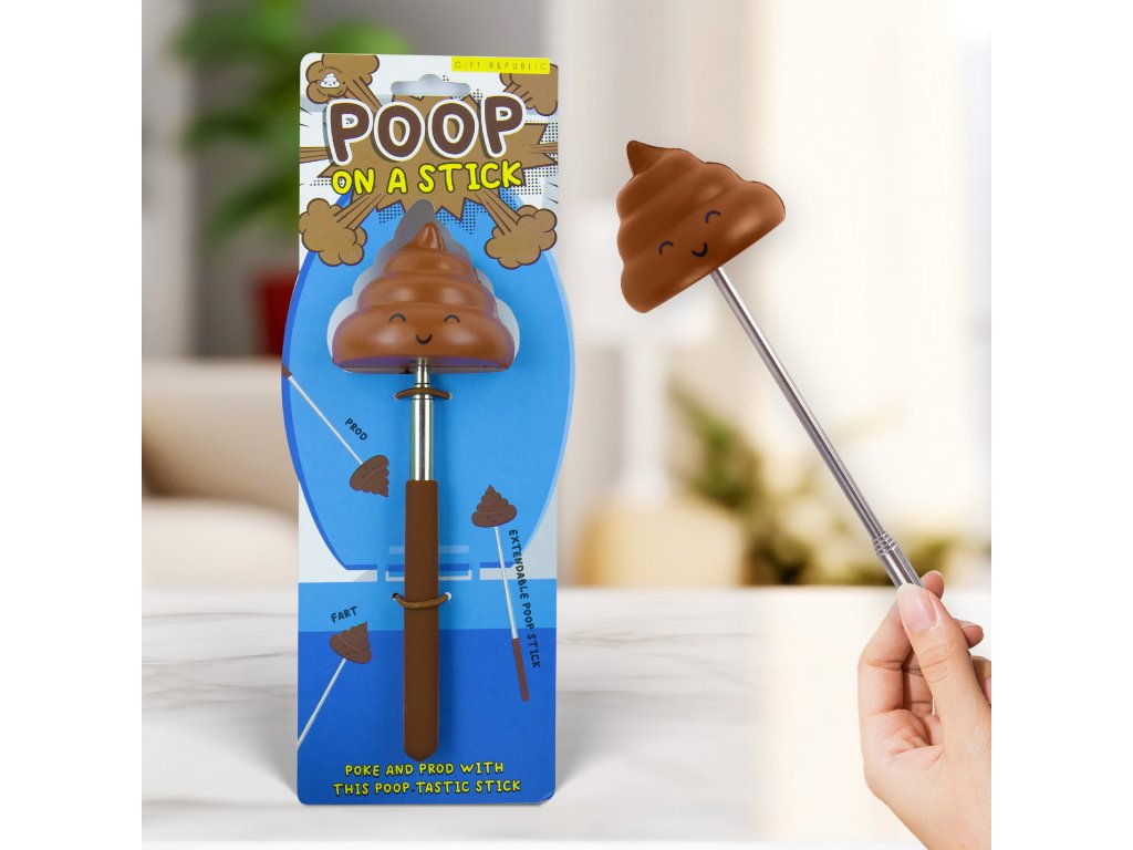 Poop On A Stick Description: Bring a laugh to any occasion with Poop on a Stick! This hilarious novelty features a foam poop perched on an extendable arm, perfect for playful pranks or as a quirky conversation starter. Dims: 10x29cm Product Info: FOAM POOP ON AN EXTENDABLE STICKDoplňkové parametry