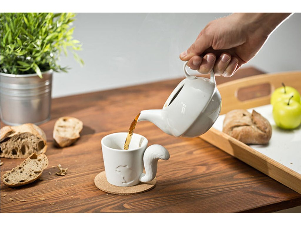 Máte v rodině někoho, kdo má rád zvířátka a rád si vychutnává teplé nápoje? Pořiďte mu tento originální porcelánový hrneček s ocáskem - veverka. Porcelánový hrneček s ocáskem - veverka má místo klasického ouška ocásek veverky. Na hrnečku je vyhotovena veverka. Porcelánový hrneček je bílé barvy. Pořiďte tento hrneček na narozeniny a udělejte radost obdarované osobě.