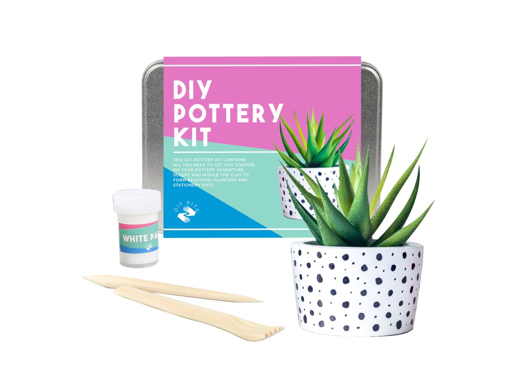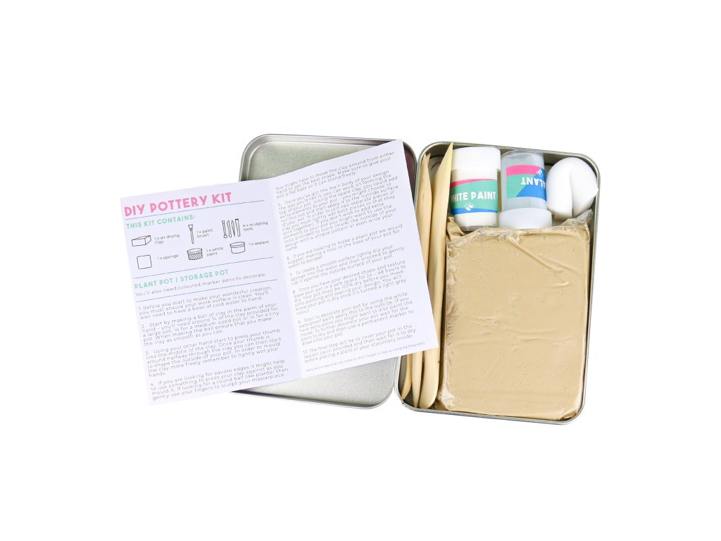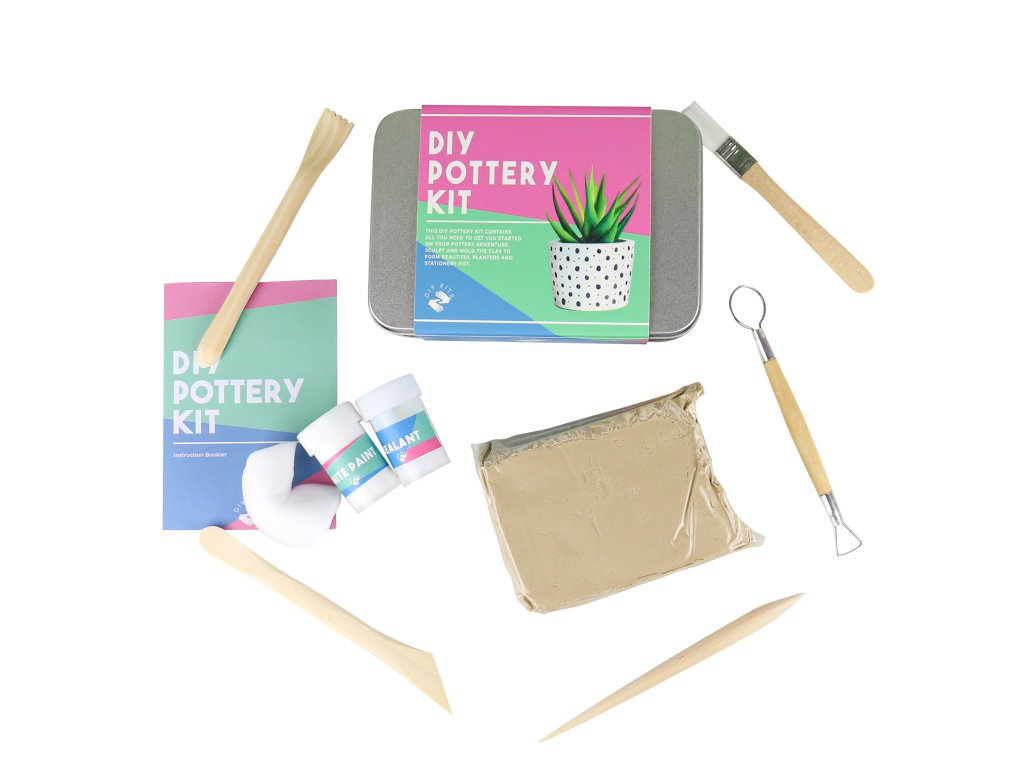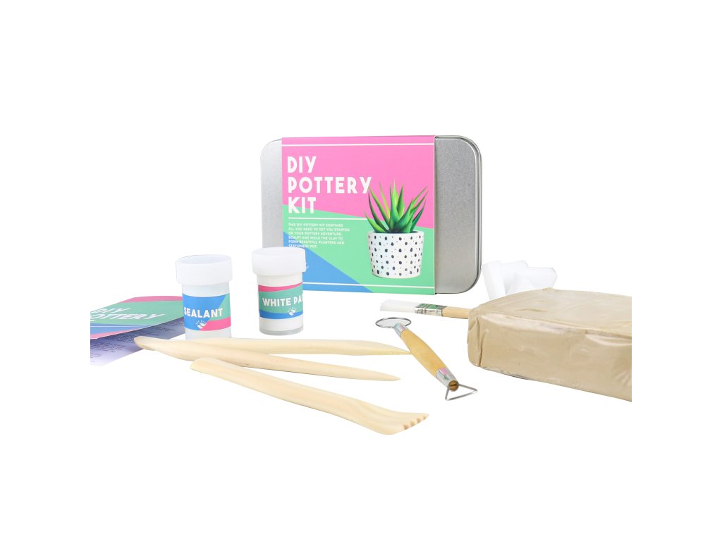 DIY Pottery Kit Description: Have you always wanted to learn the craft of pottery? This kit contains all you’ll need to get you started. You’ll be sculpting everything from mugs to plant pots before you know it. Dims: 11x16x3.5cm Product Info: Kit includes: 500g air dry clay, 5 sculpting tools, cleaning sponge, white paint, sealant and instructions.Doplňkové parametry