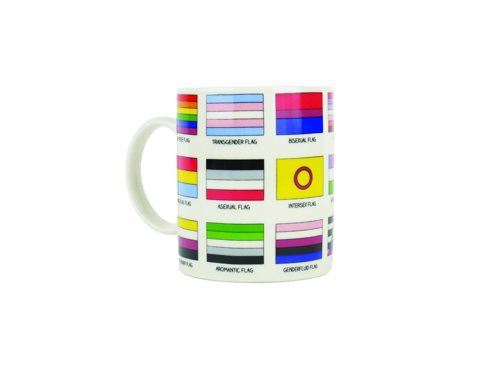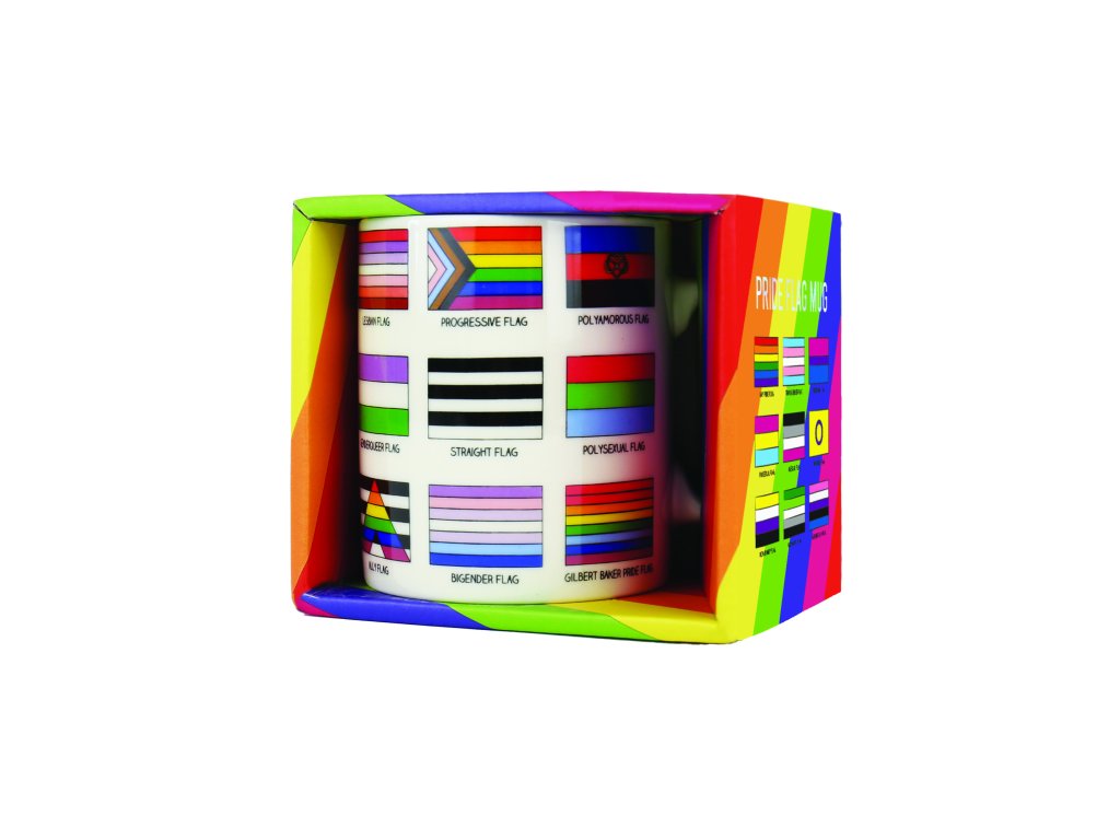 Pride Flag Mug Description: Take pride in your morning brew! This colourful mug will show your support and help you teach yourself and others about the different flags of pride. Each one carries its own importance for every part of the LGBTQ+ community. Dims: 12x10x8.5cm Product Info: 350ml/12ozDoplňkové parametry