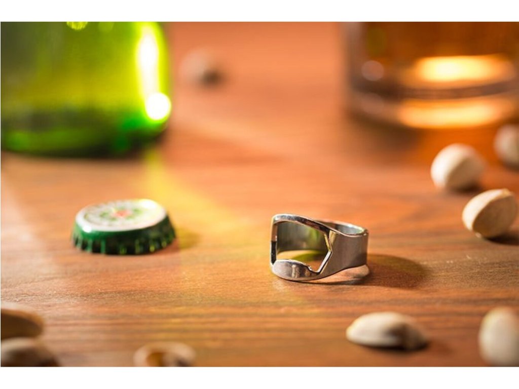 Každému se již na party stalo, že si chtěl otevřít láhev svého oblíbeného pití a neměl čím. Díky tomuto prstenovému otvíráku se Vám to již nikdy nestane. Jedná se o jednoduchý prstýnek s otvírákem na spodní straně. Nejenže nebudete závislí na jiném otvíráku, ale také budete vypadat, že otvíráte lahve bleskurychle a pouze rukou.